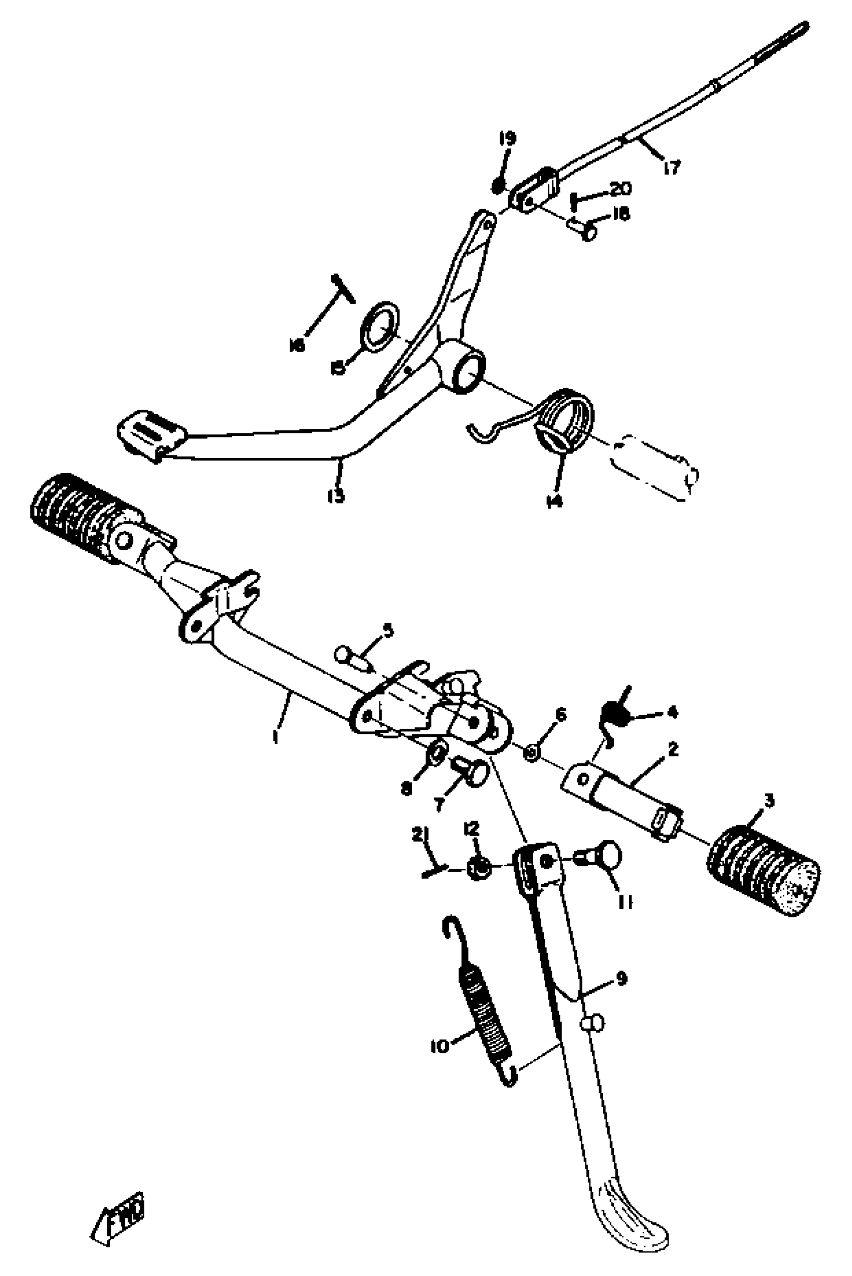 Yamaha HT1 (HT1) 1970 STAND, FOOTREST & REAR BRAKE PEDAL Diagram
