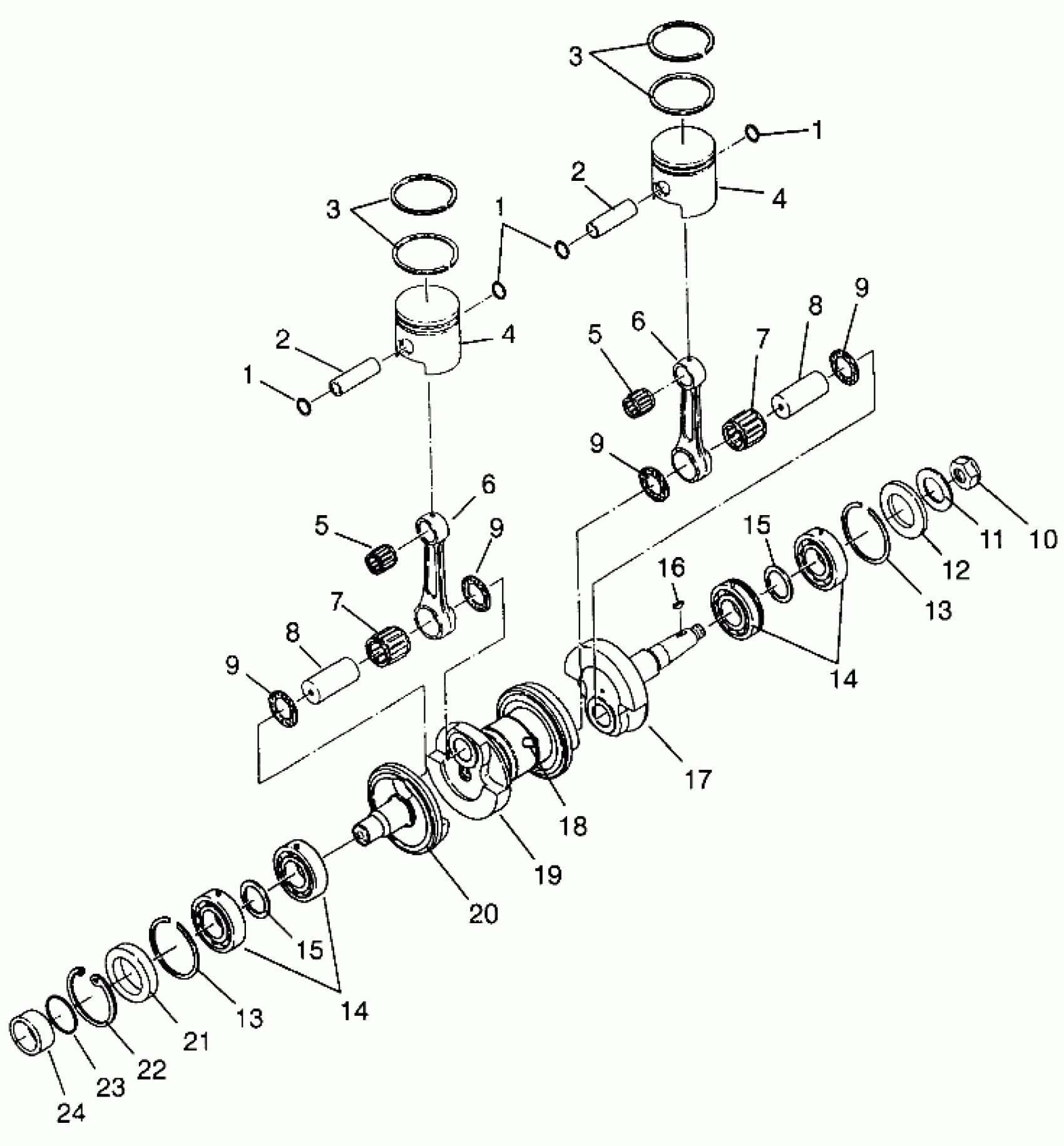CRANKSHAFT ASM,2 CYL. Substituted by 2201243 (Incl. 6-9, 17-20)