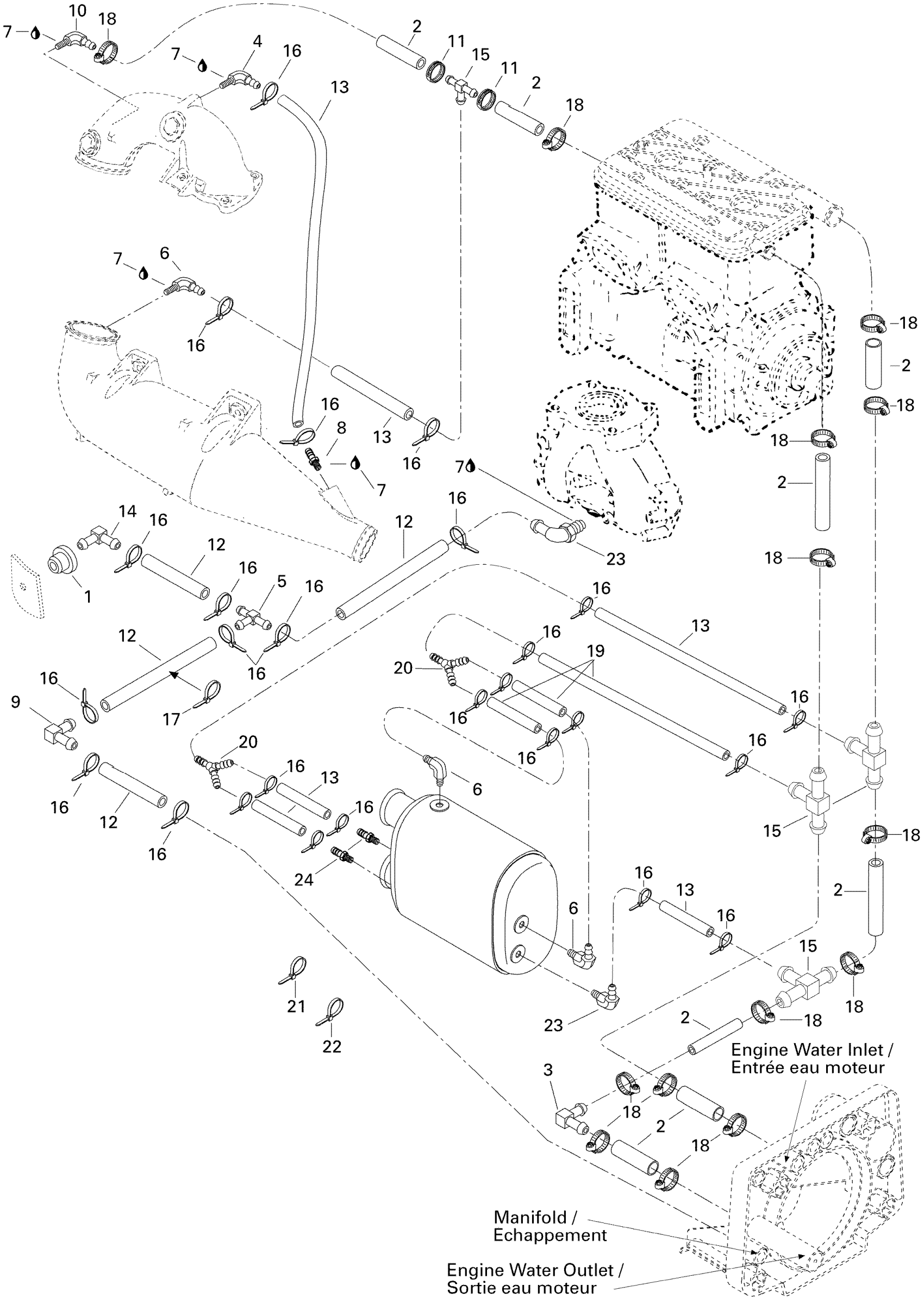 Sea-doo HX, 5881, 1996 01- Cooling System Diagram
