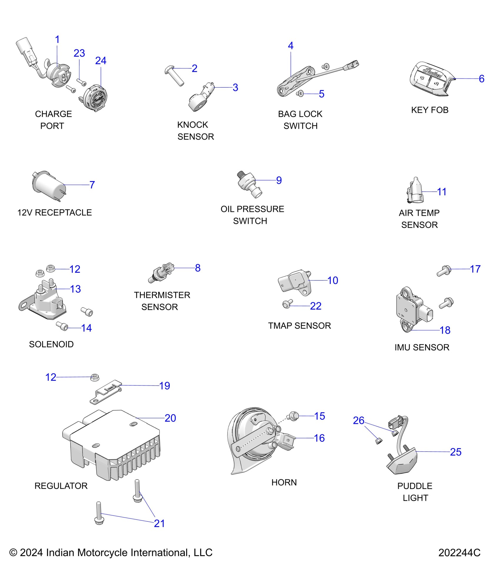 Polaris INDIAN PURSUIT ELITE 112 ALL OPTIONS (R01) - N25LDESSA/B/E/J ELECTRICAL, COMPONENTS 1 - N25LDESS ALL OPTIONS (202244C) Diagram