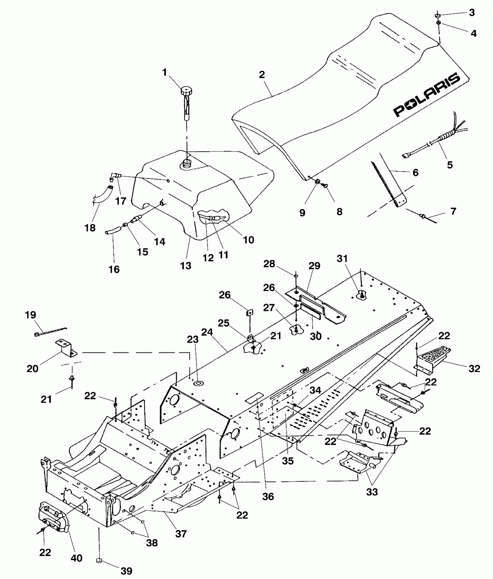 Polaris INDY 340 TOURING - S00LT3AS TUNNEL and SEAT - S00LT3AS (4958075807a005) Diagram