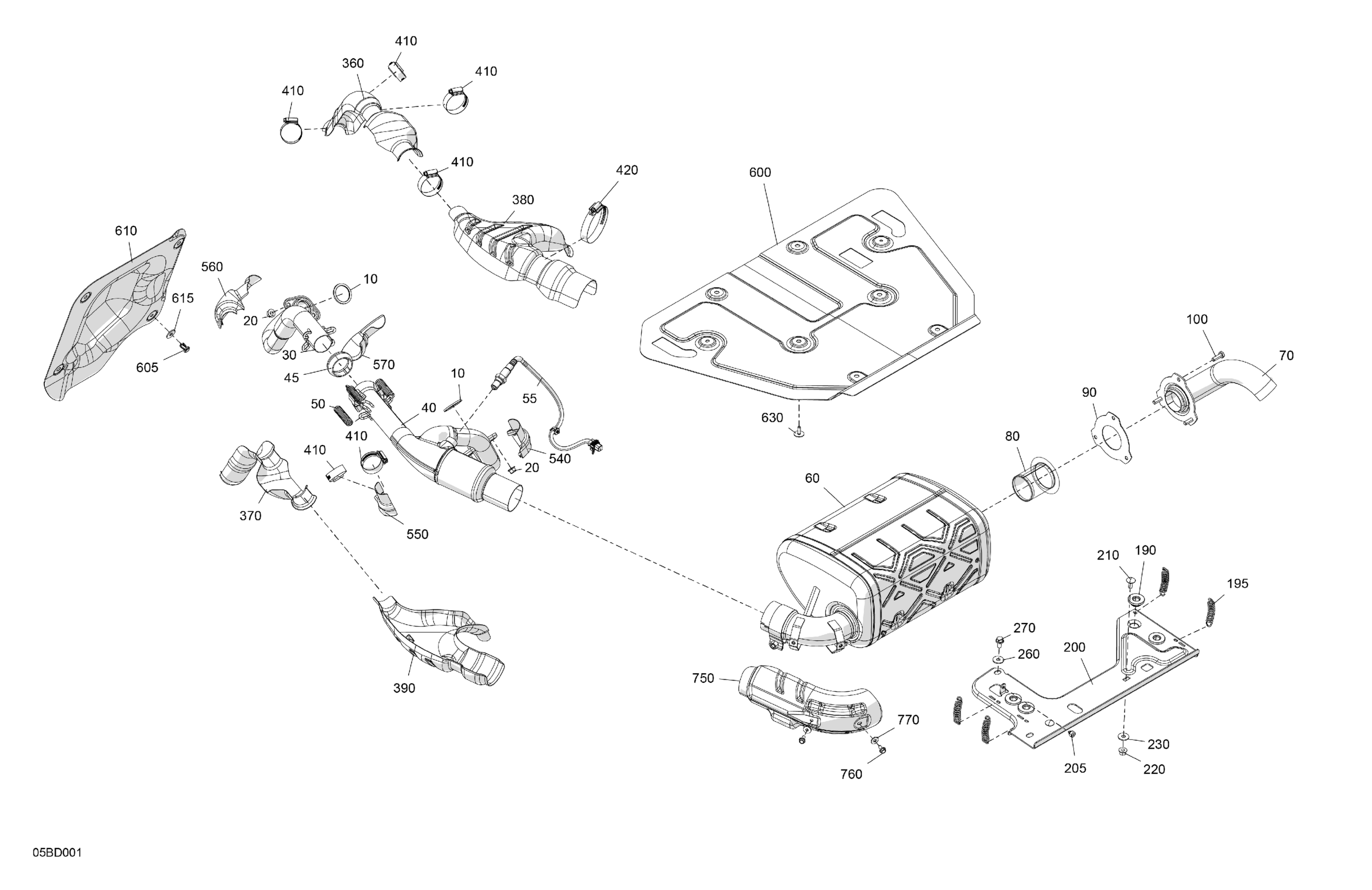 Can-Am Commander 1000R EFI - DPS - 6PRA - Tundra Green - 60" Width CALI, 2024 Engine - Exhaust Diagram