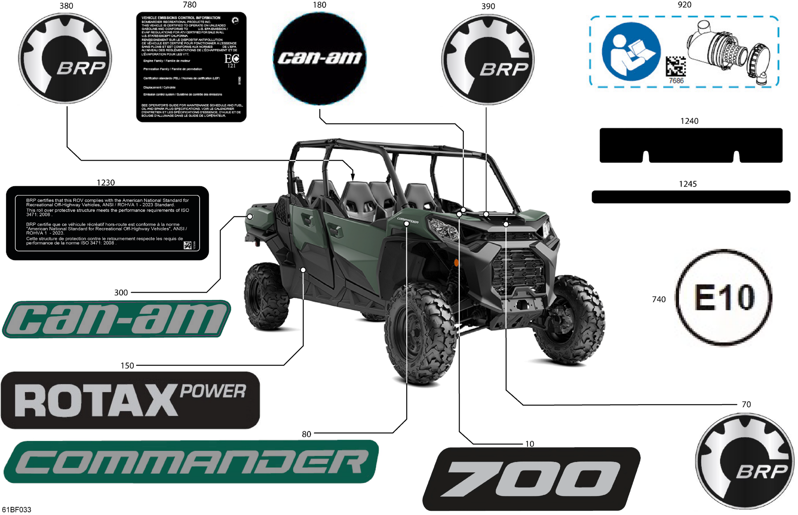 Can-Am International - Commander MAX - 700 EFI - DPS - 6HTE - Compass Green - 60" Width, 2026 Body - Decals Diagram