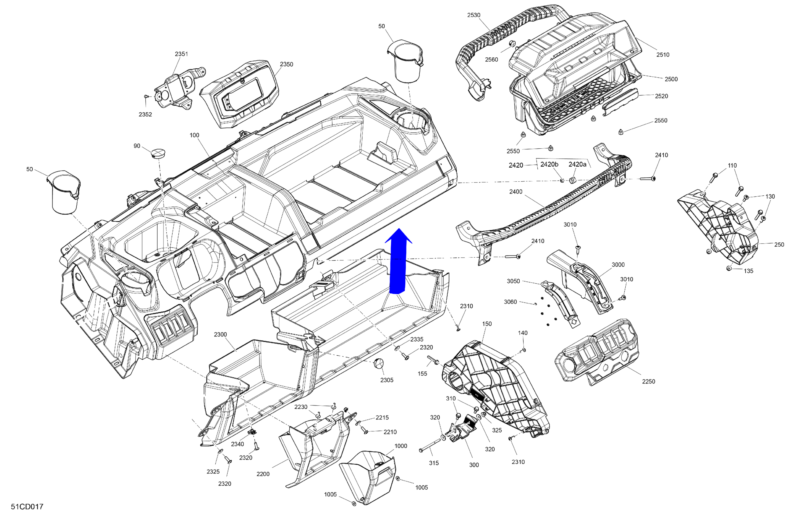 Can-Am International - Defender HD10 - XU - 7NRB - Timeless Black Metallic - 64" Width, 2024 Cab Interior - Dashboard Diagram