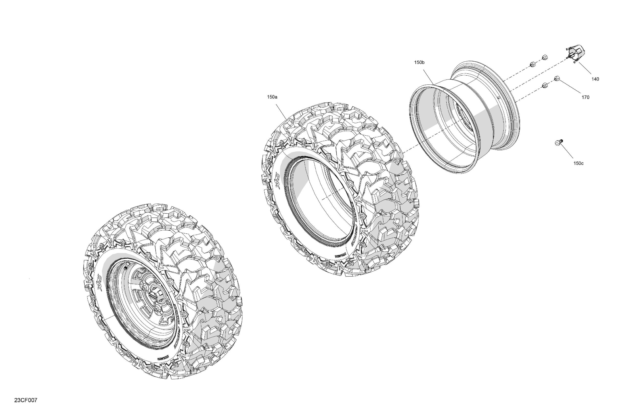 Can-Am Defender - HD7 - BASE - 6XTC - Compass Green - 62" Width - CALI, 2026 Drive - Rear Wheels Diagram
