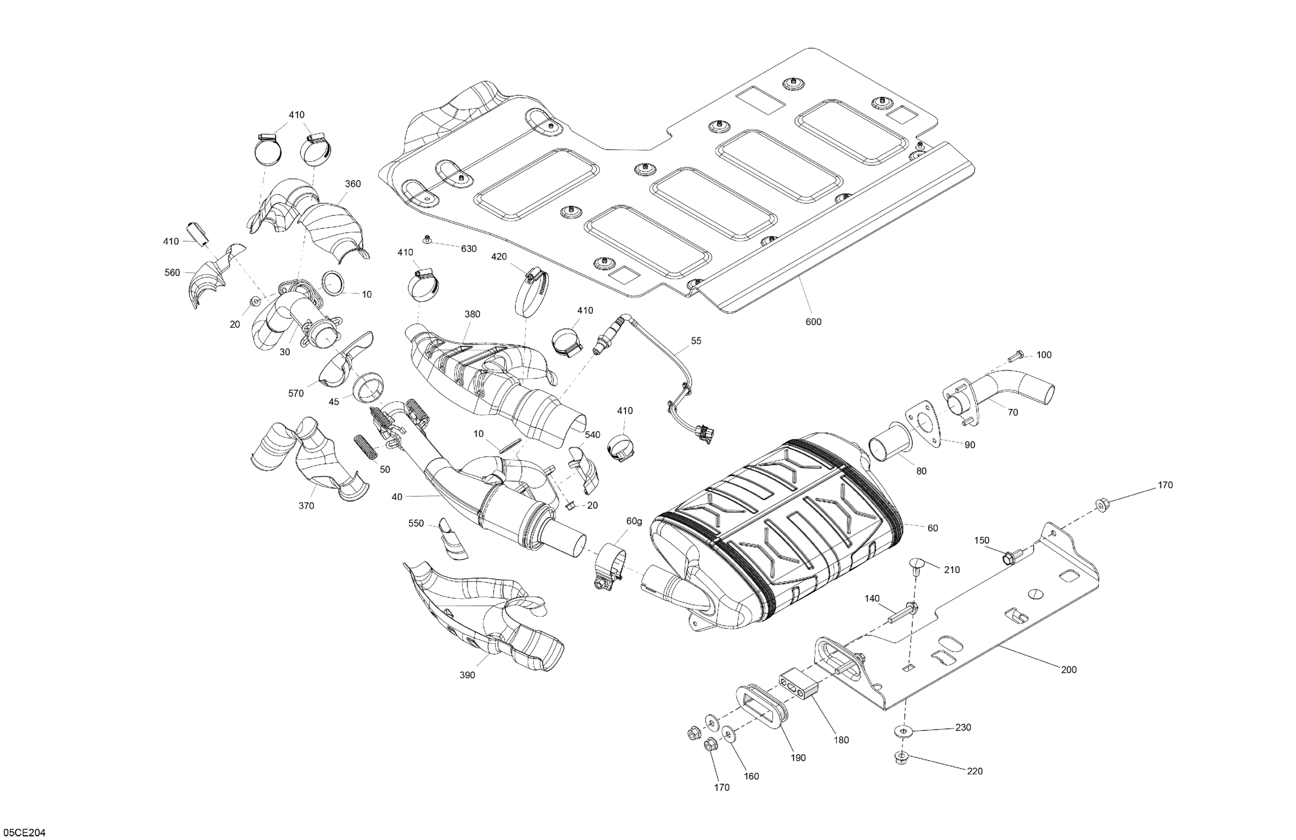 Can-Am Defender - HD9 - BASE - 6WSA - Compass Green - 62" Width CALI, 2025 Engine - Exhaust Diagram