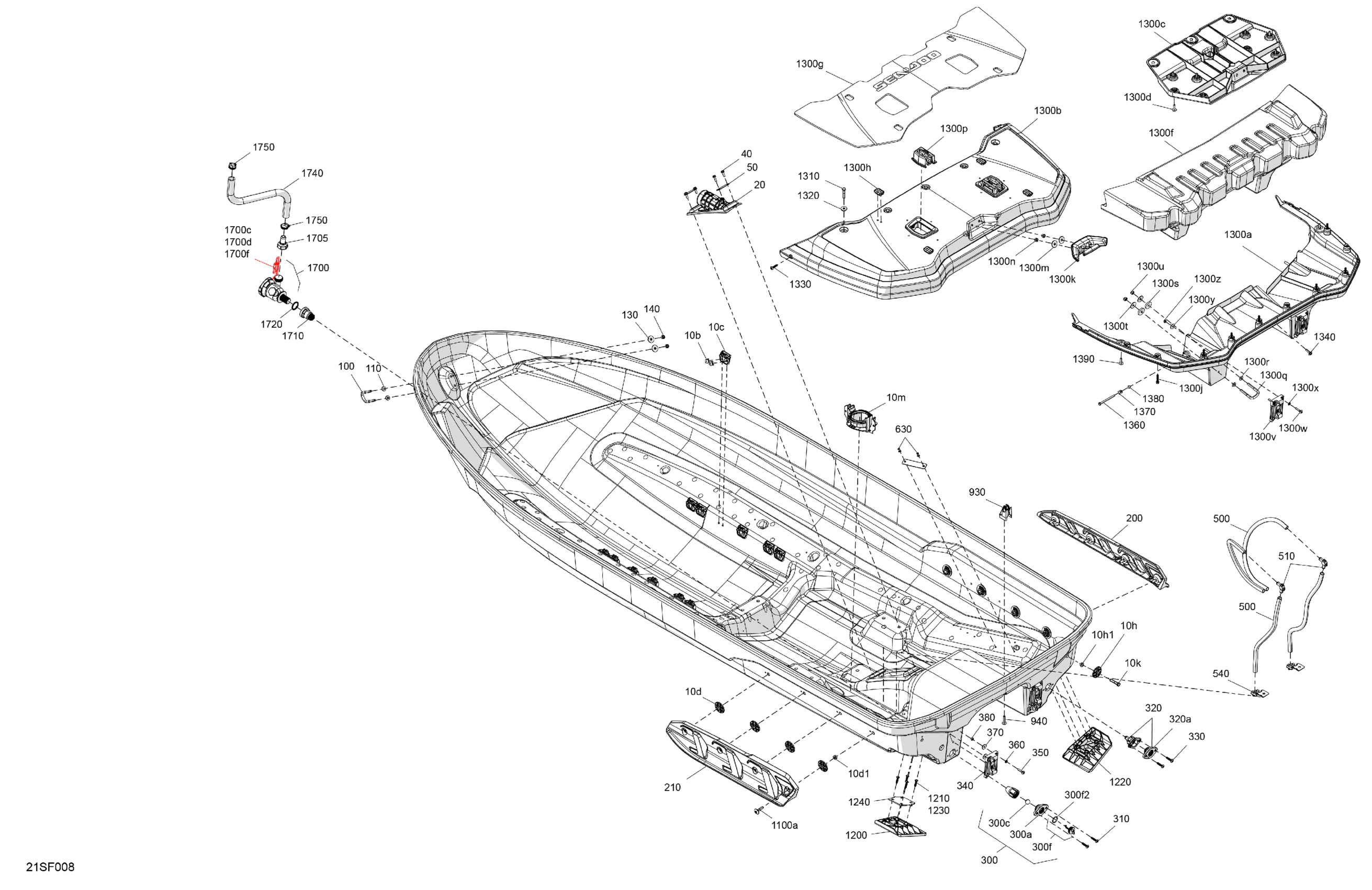 Sea-doo International - FISH PRO TROPHY - - 170 - 19TA - Flint Grey - Audio, 2026 07- Body - Hull Diagram