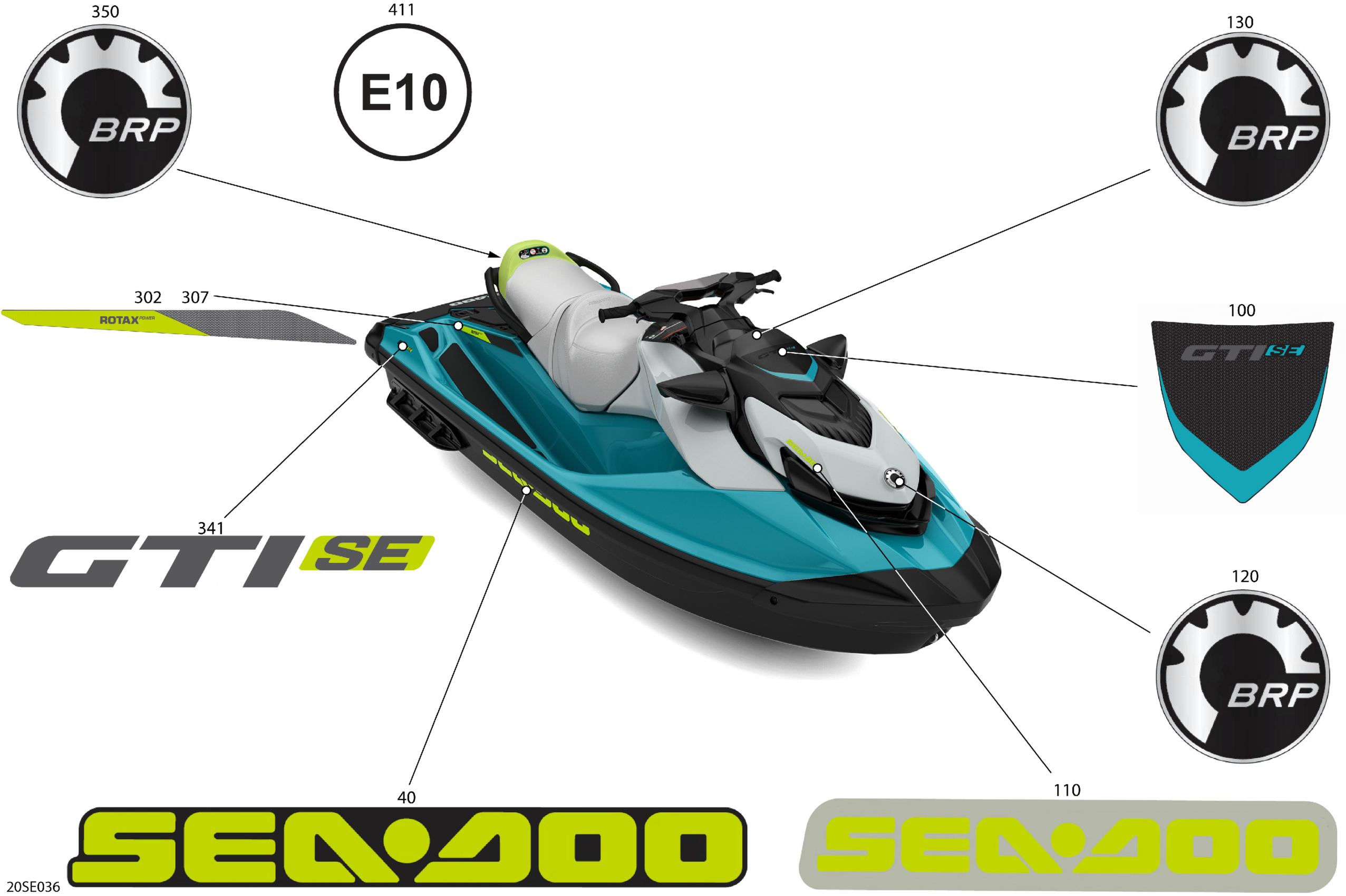 Sea-doo International - GTI - 130 - SE - 29SD - Teal Blue Metalic - Audio, 2025 07- Body - Decals Diagram