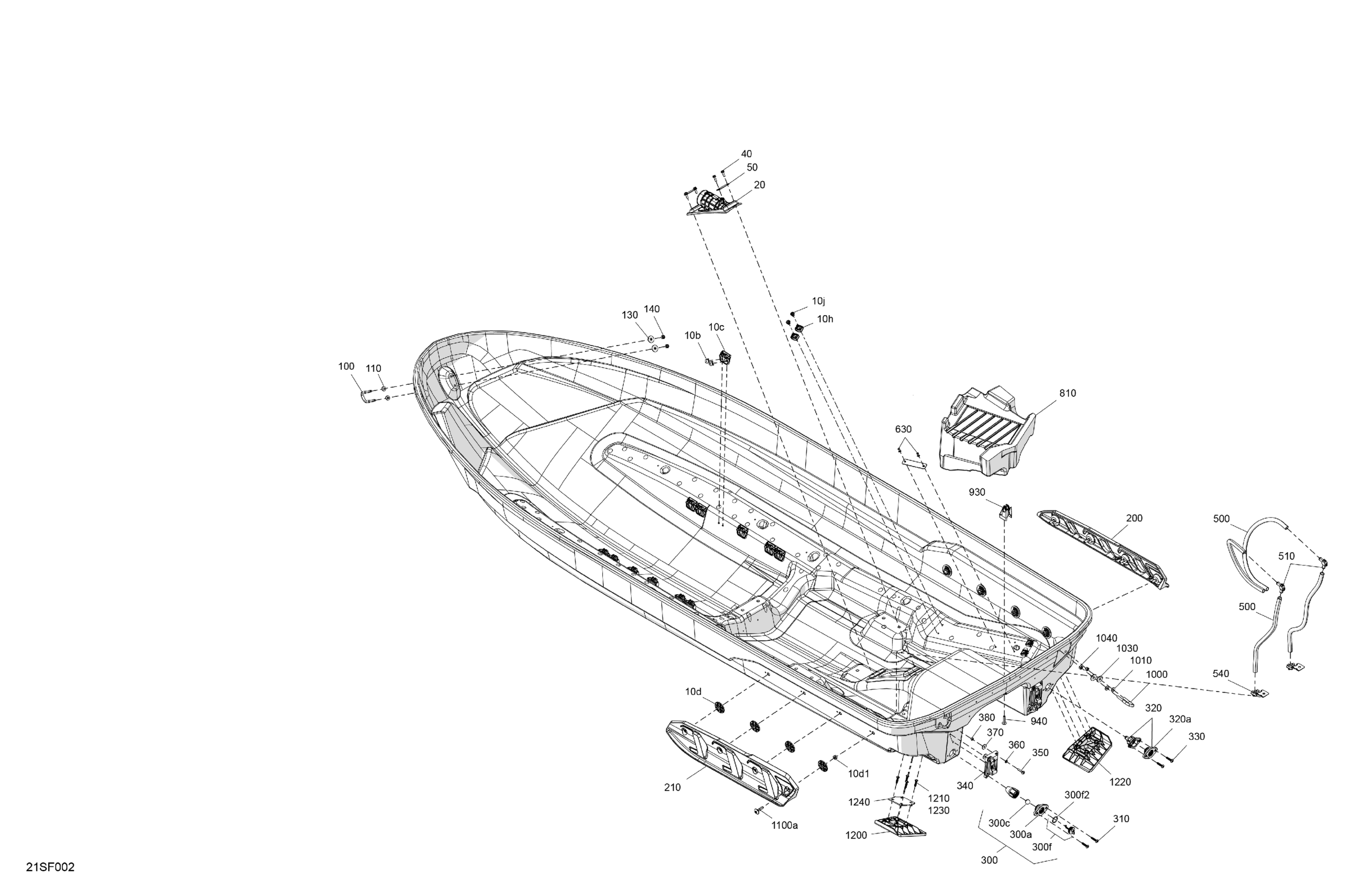 Sea-doo International - GTX - 230 - STD - 12TB - Blue Abyss - Audio, 2026 07- Body - Hull Diagram