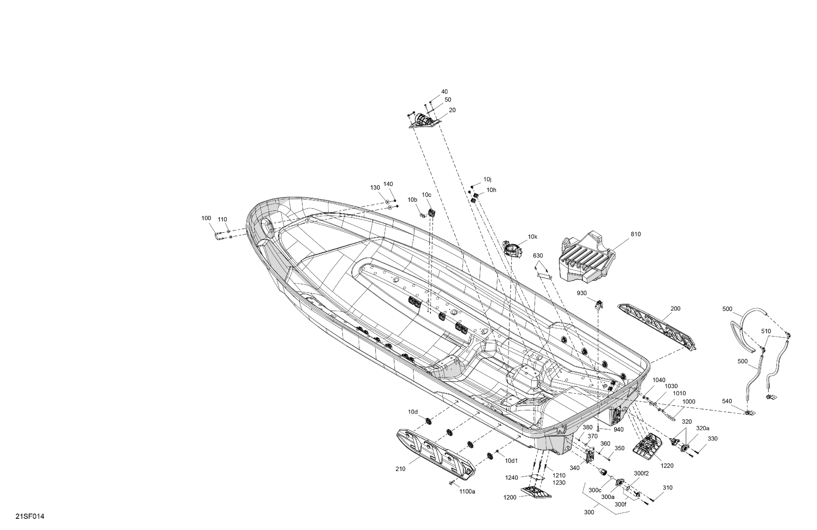 Sea-doo International - GTX - 325 - LIMITED - 26TA - Hybrid White Peal - Audio, 2026 07- Body - Hull Diagram