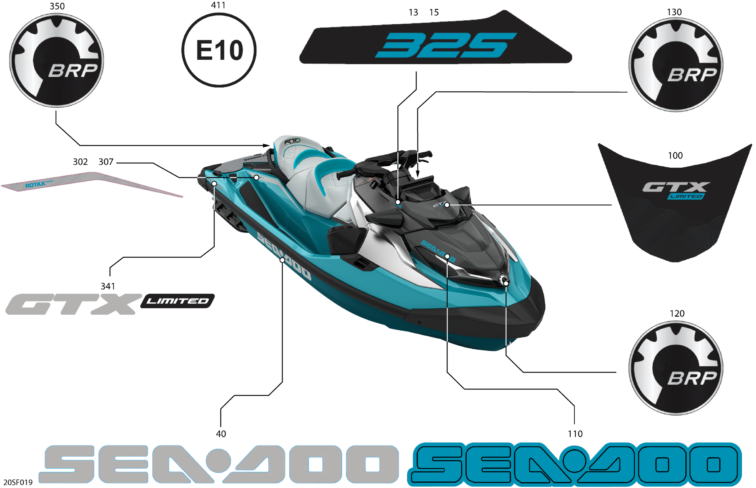 Sea-doo International - GTX - 325 - LIMITED - 26TB - Teal Blue Metalic - Audio, 2026 07- Body - Decals Diagram