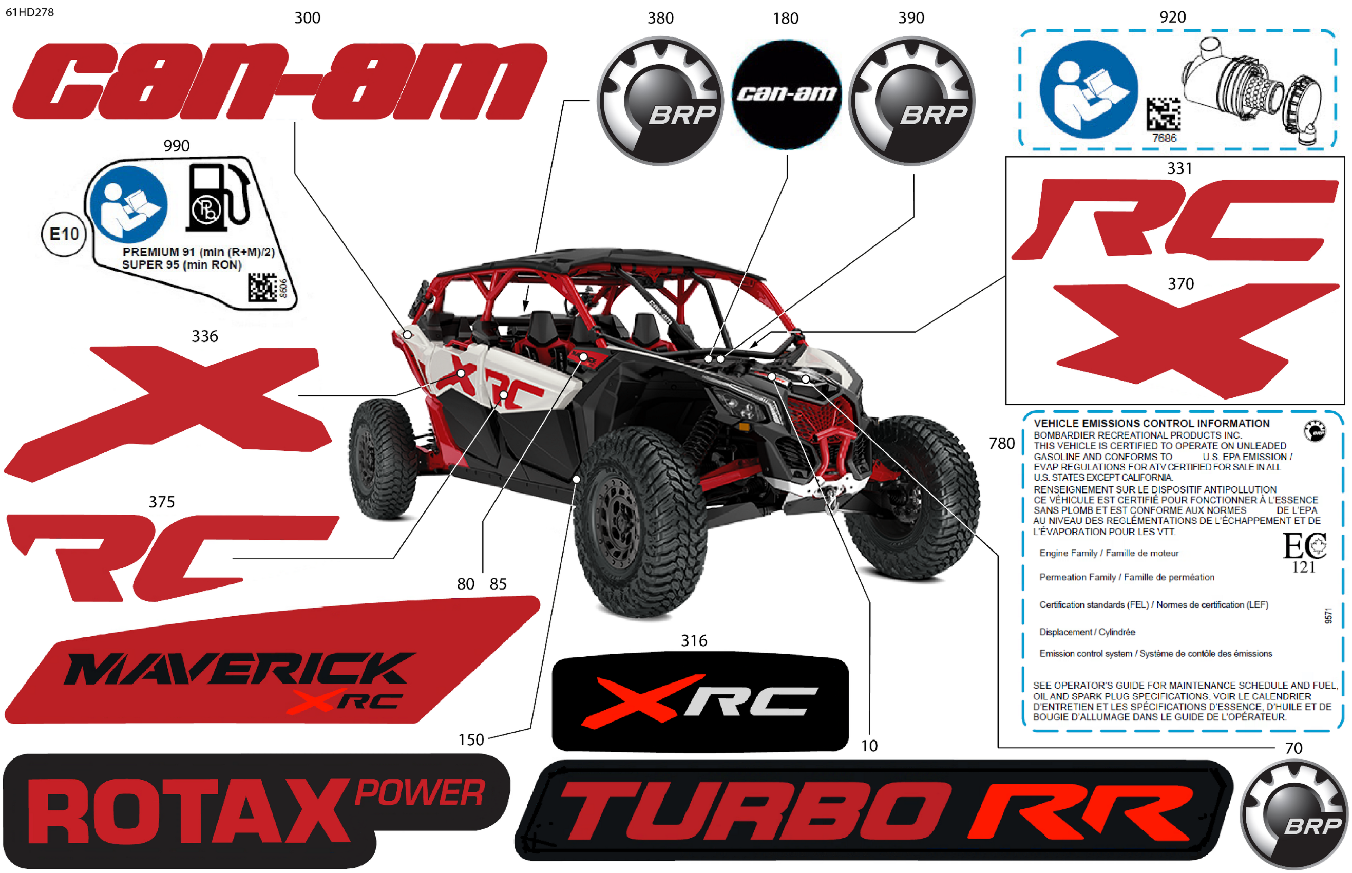 Can-Am International - Maverick MAX Turbo RR - XRC - 9MRH - Hybrid White Pearl - 72" Width, 2024 Body - Decals Diagram