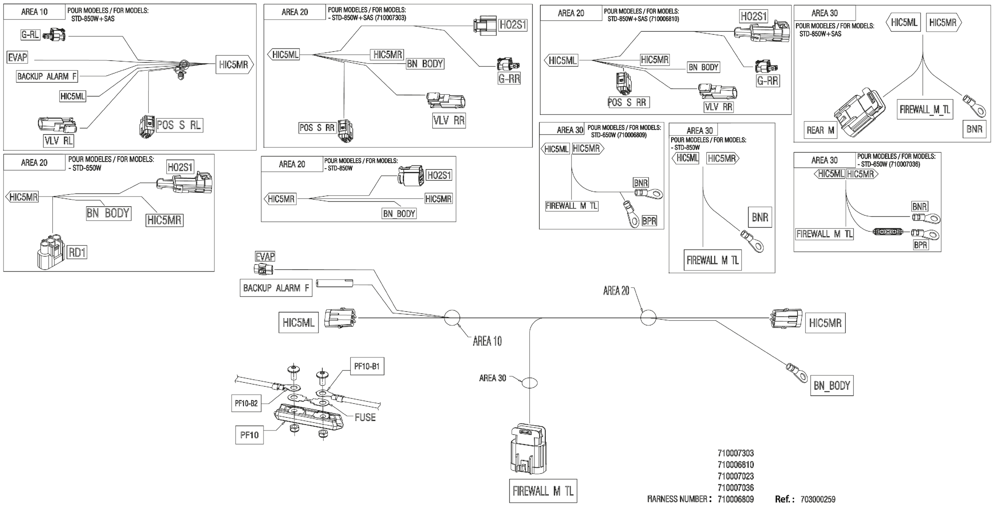 Can-Am Maverick Turbo - DS - 9DRE - Fiery Red Metallic - 64" Width CALI, 2024 Electric - Junction Wiring Harness - 710007036 Diagram
