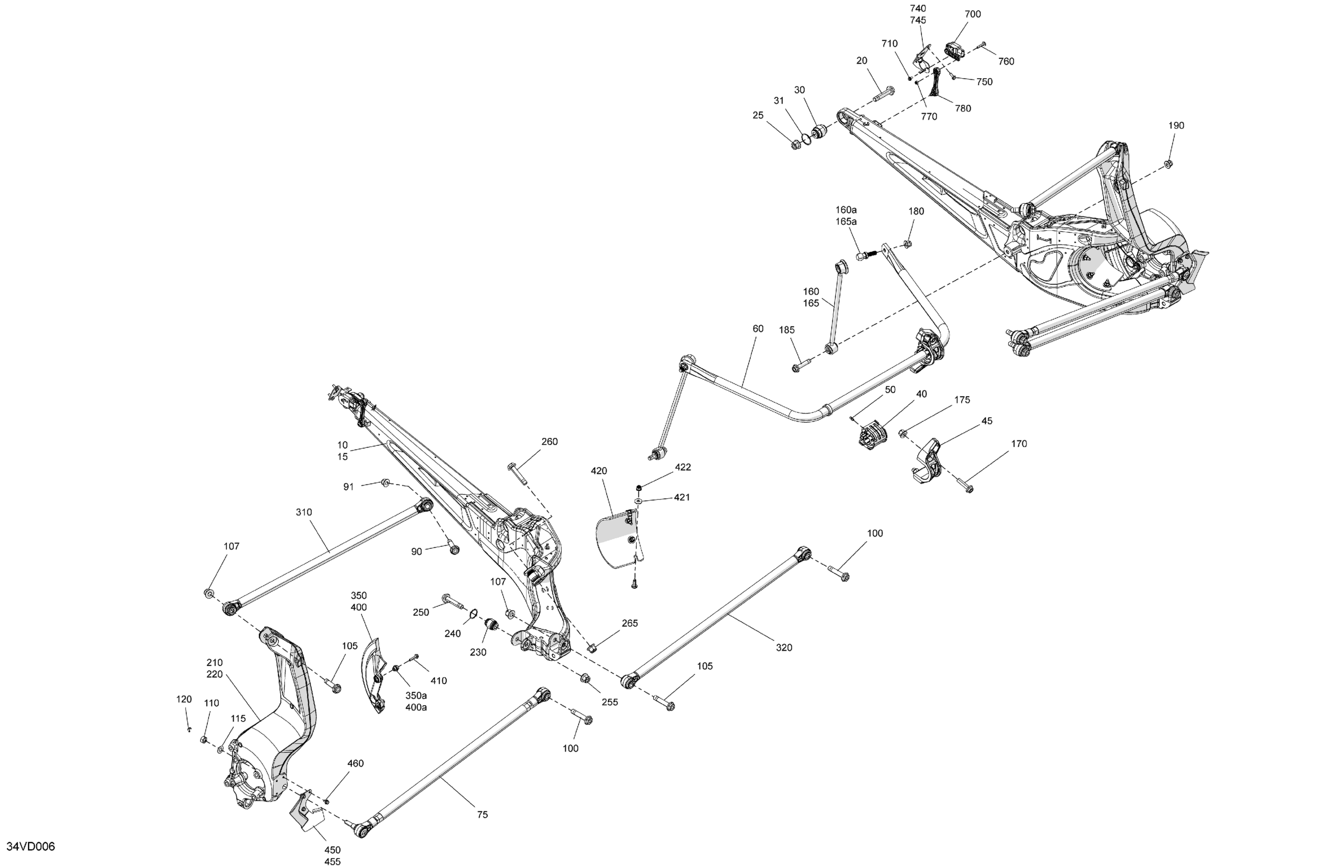 Can-Am Maverick R 996NT - XRS - 7ARG - Timeless Black Metallic - 77" Width SAS CALI, 2024 Suspension - Rear Components Diagram