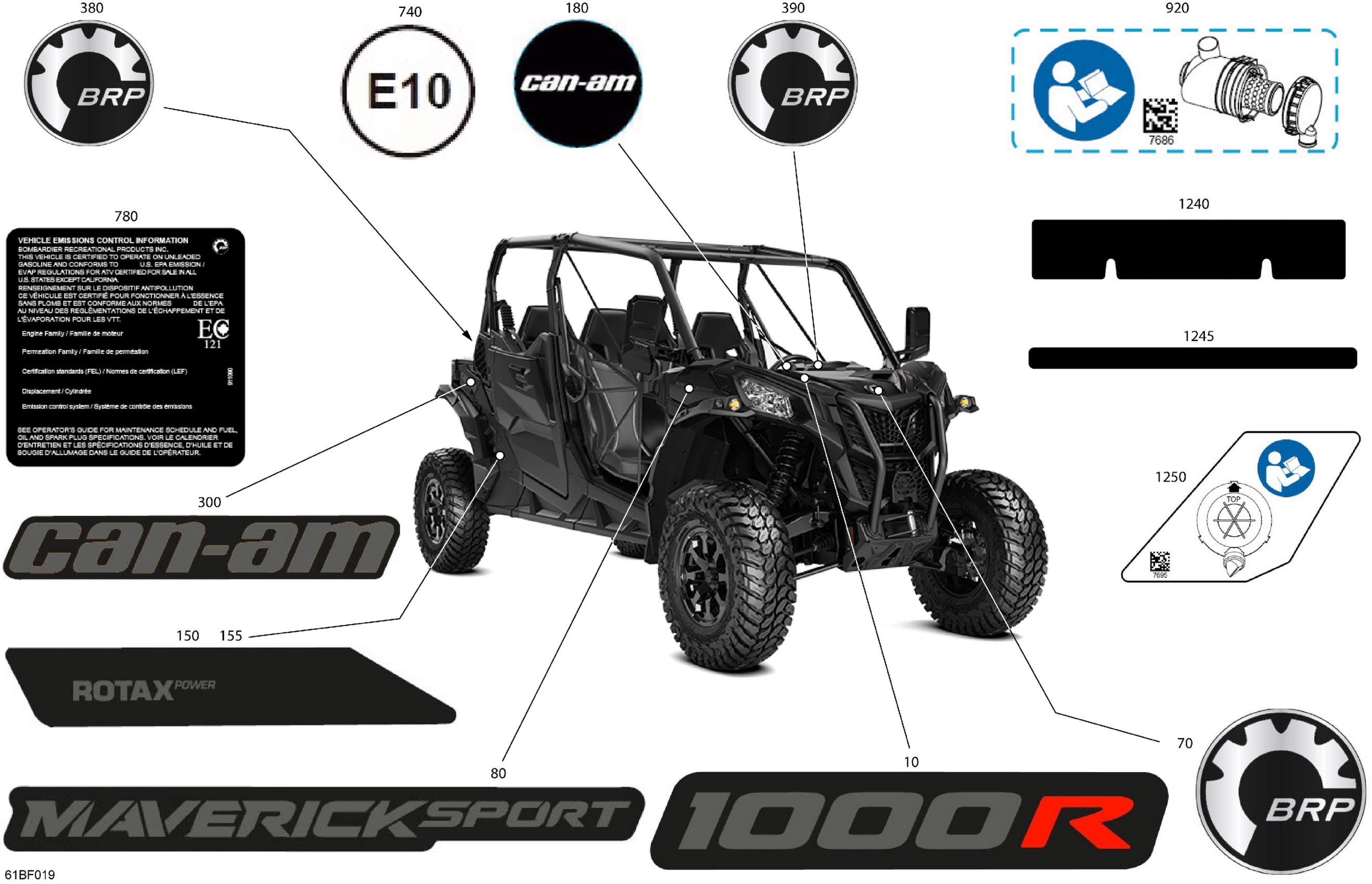 Can-Am International - Maverick Sport MAX - 1000R EFI - DPS - 9JTD - Timeless Black Metallic - 60" Width, 2026 Body - Decals Diagram