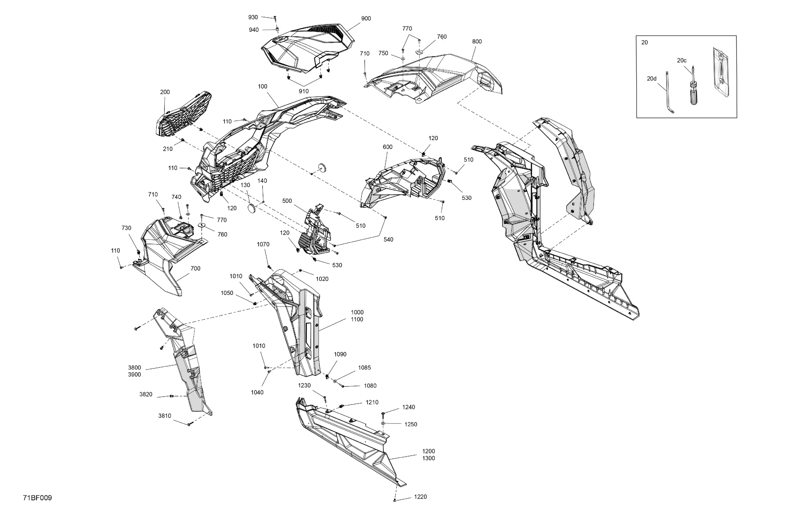 Can-Am Maverick Sport - 1000R EFI - DPS - 9GTB - Timeless Black Metallic - 60" Width, 2026 Body - Front Section Diagram