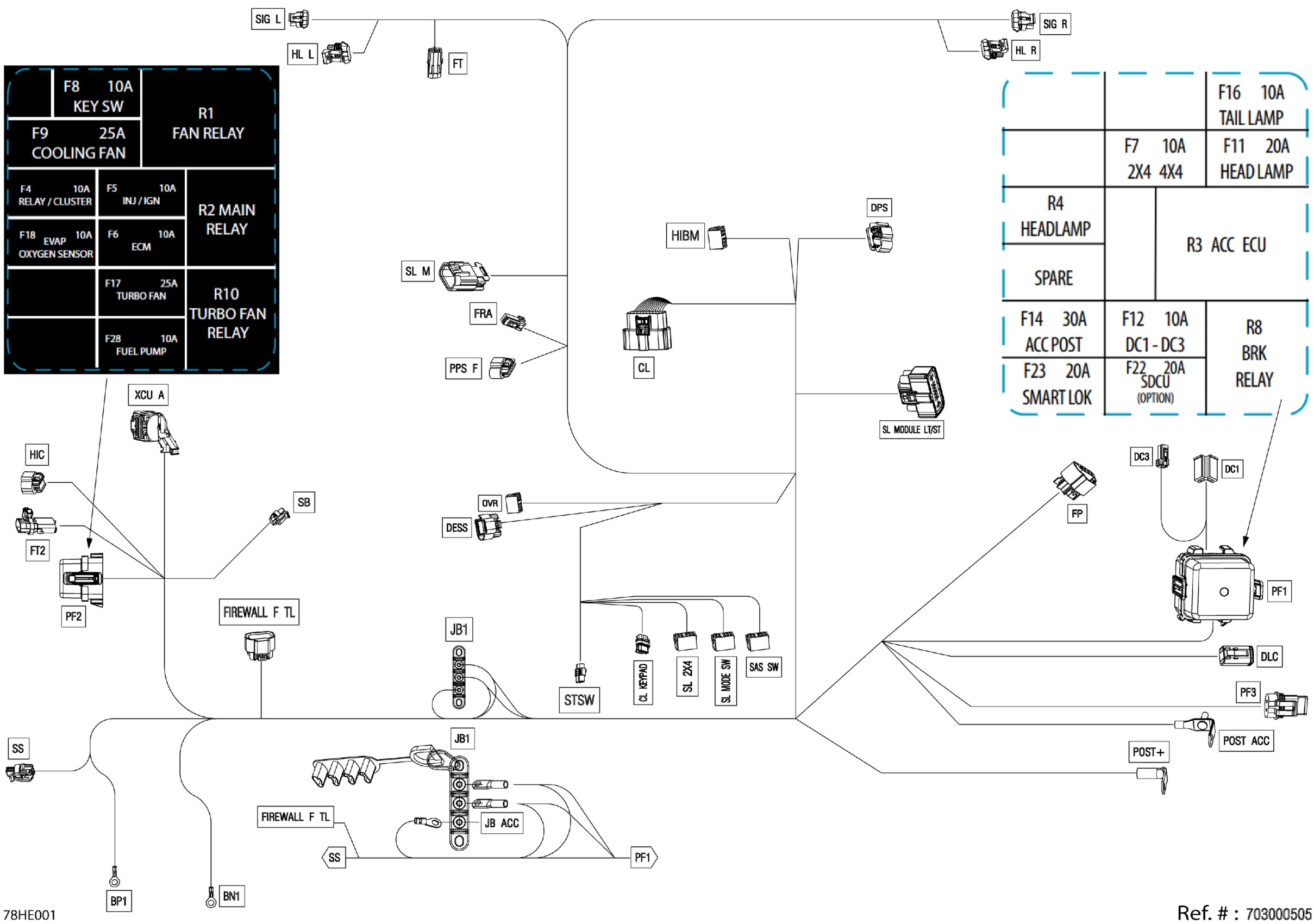Can-Am Maverick - TURBO RR - DS - 7XSC - Fiery Red Metallic - 64" Width CALI, 2025 Electric - Main Harness - 710009540 Diagram