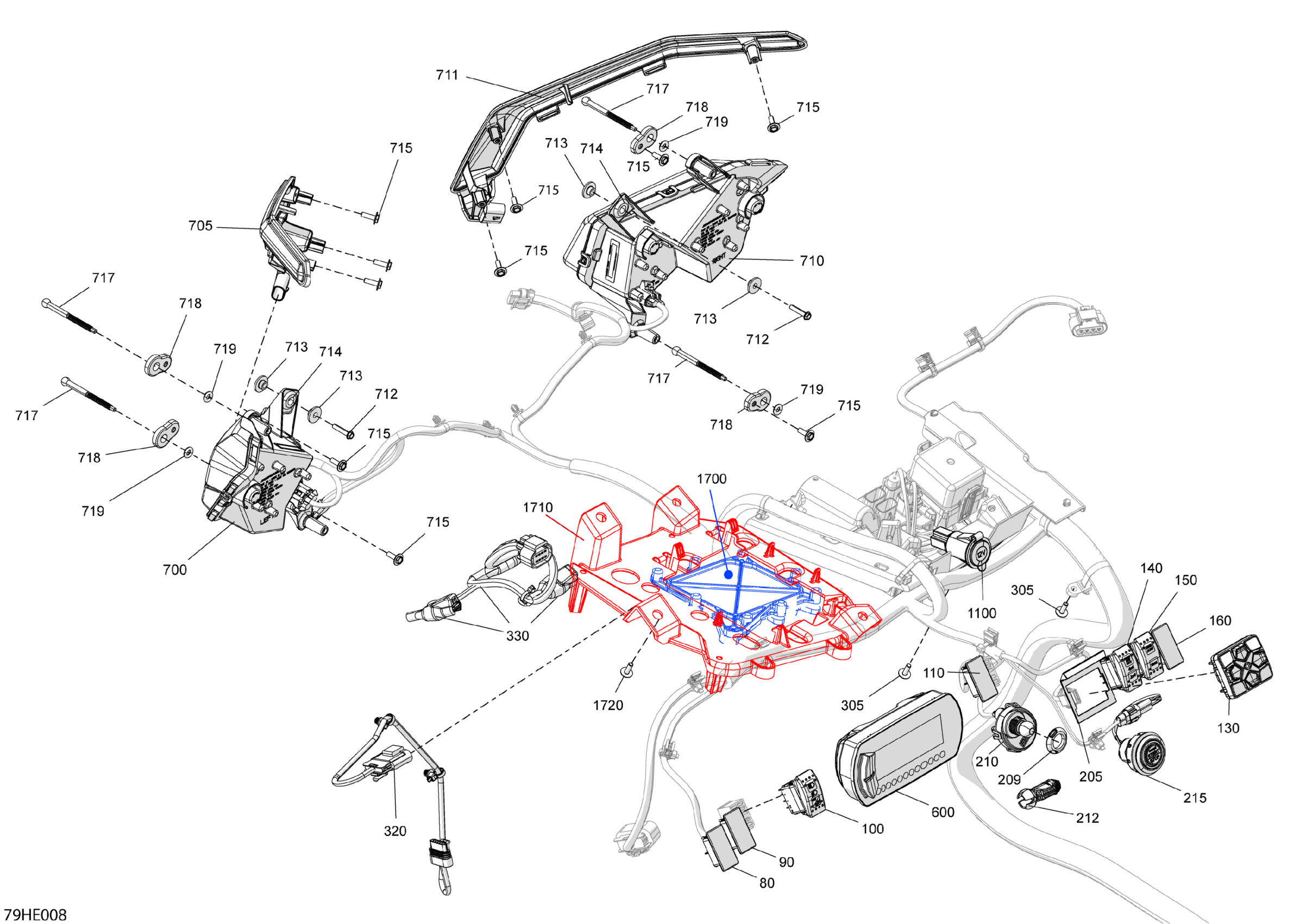 Can-Am Maverick MAX - TURBO - DS - 7WSE - Fiery Red Metallic - 64" Width CALI, 2025 Electric - Front Section Diagram