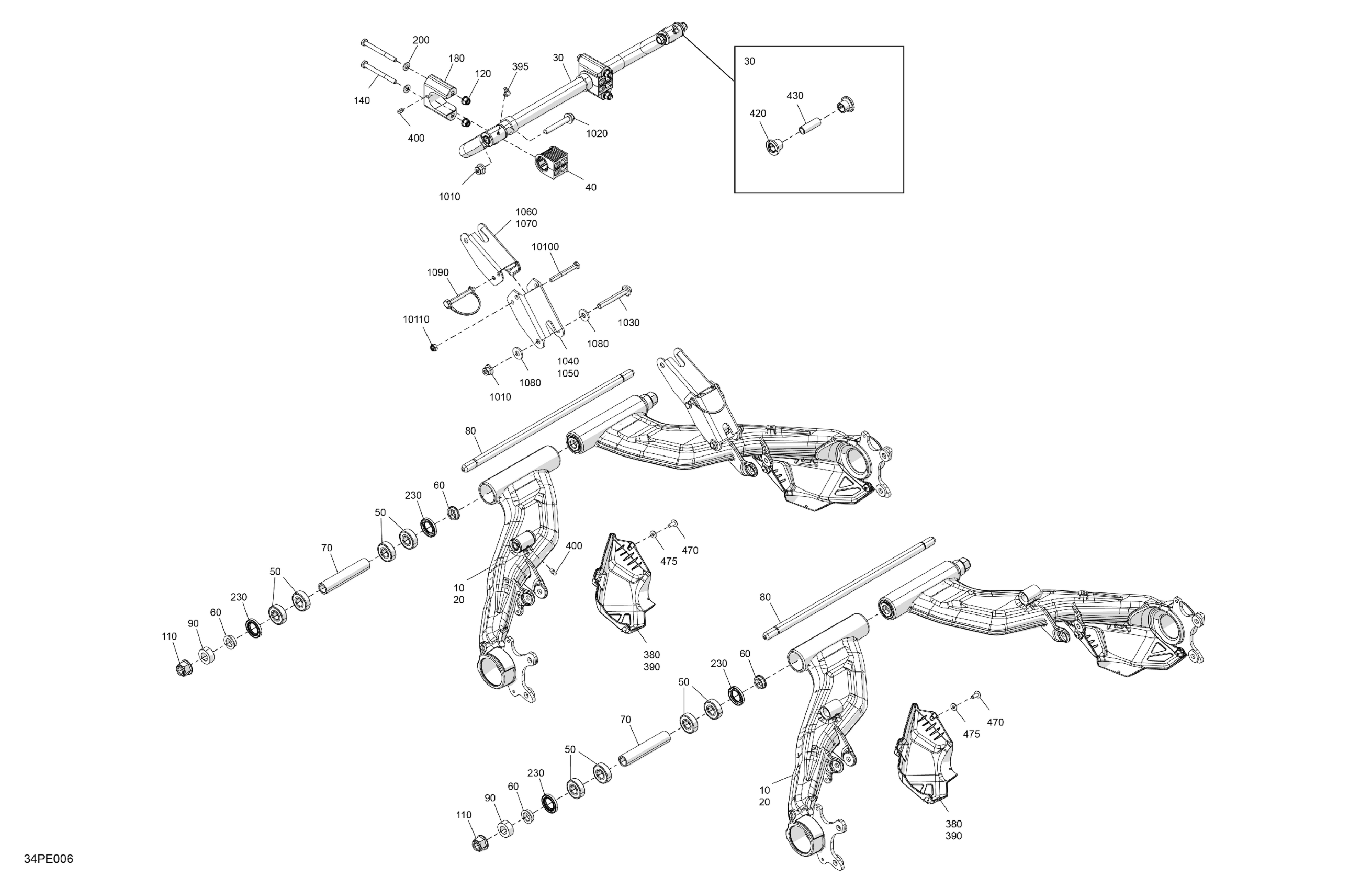 Can-Am OUT-MAX - 6X6 - XT - 1000 EFI - 5ZSA - Boreal Green - 2025 Suspension - Rear Components Diagram