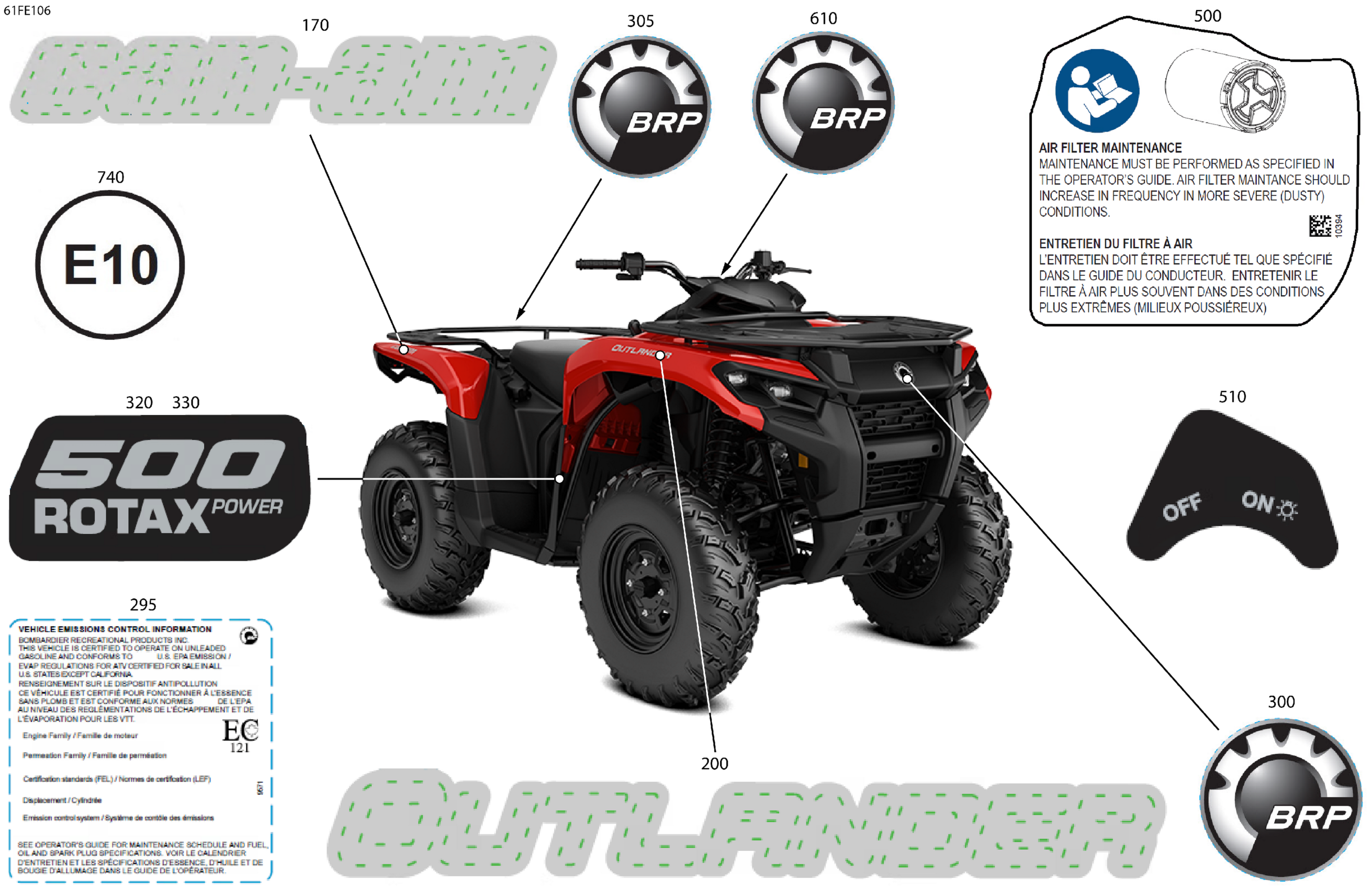 Can-Am Off-Road International - OUTLANDER - 2X4 - STD - 500 - 1KSA - Legion Red - 2025 07- Body - Feature Decals Diagram