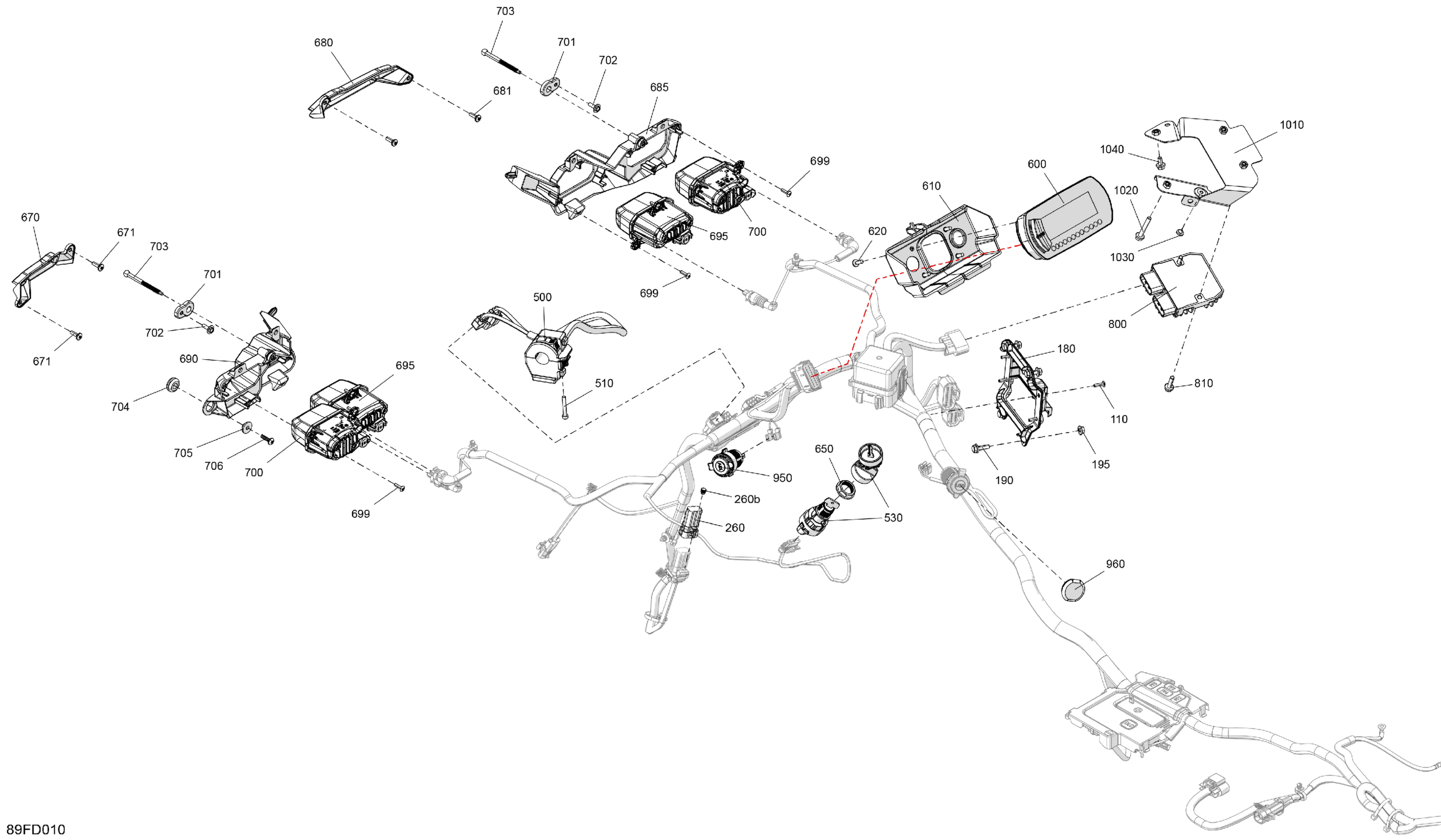 Can-Am Outlander 500 2X4 - 1KRB - STD Package - Legion Red, 2024 Electric - Front Section Diagram