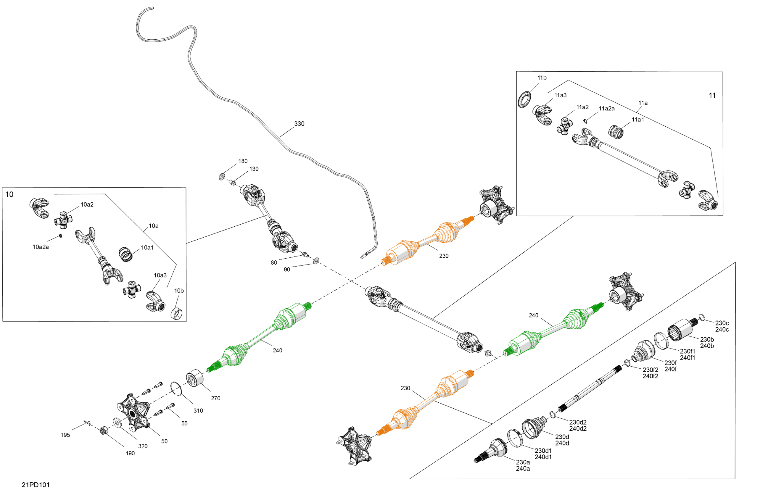 Can-Am Outlander MAX 450 EFI 6X6 - 4ZRA - DPS Package - Tundra Green, 2024 Drive - Rear - Common Parts Diagram