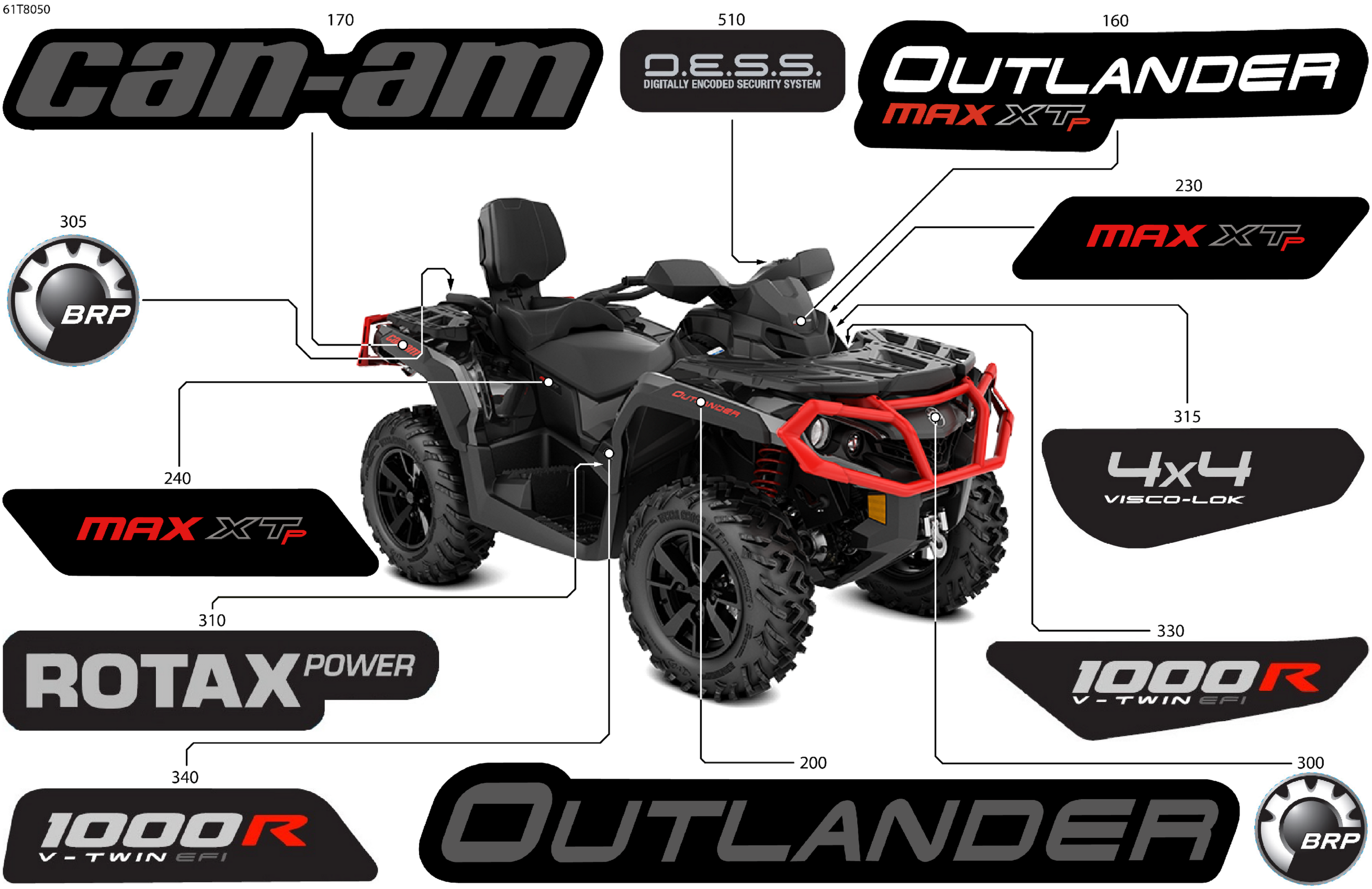 Can-Am OUTLANDER MAX - 4X4 - XTP - 1000R - 5JJA - Timeless Black Metallic, 2018 Body - Feature Decals Diagram