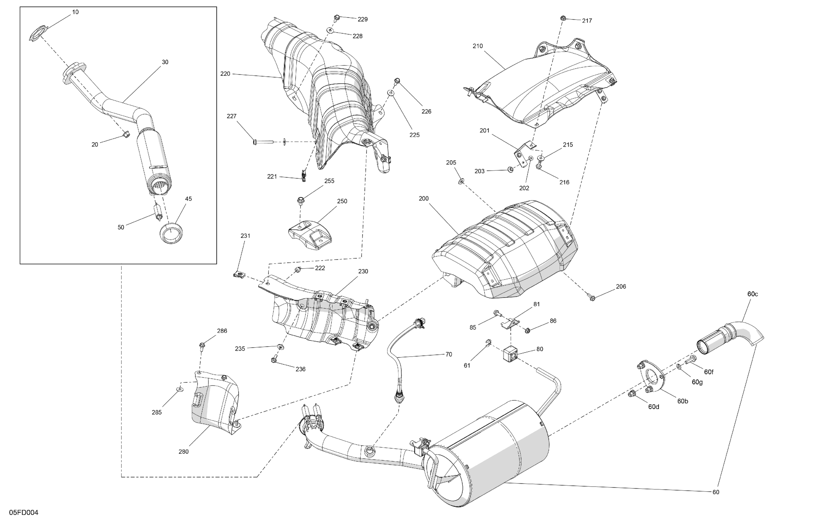Can-Am Outlander Max 500 4X4 - 1VRA - DPS Package - Granite Grey, 2024 Engine - Exhaust Diagram