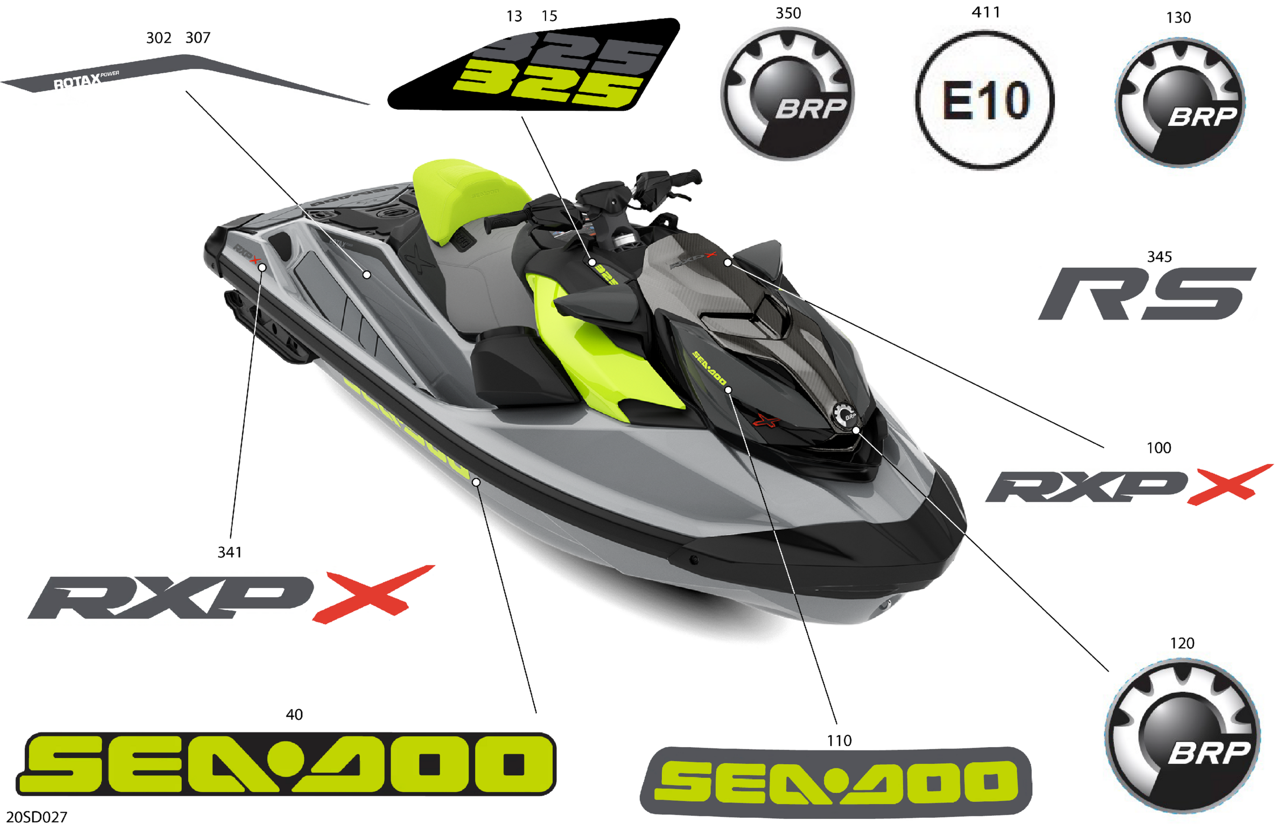 Sea-doo International - RXP-X 325 - 21RH - X package - Ice Metal,2024 07- Body - Decals Diagram