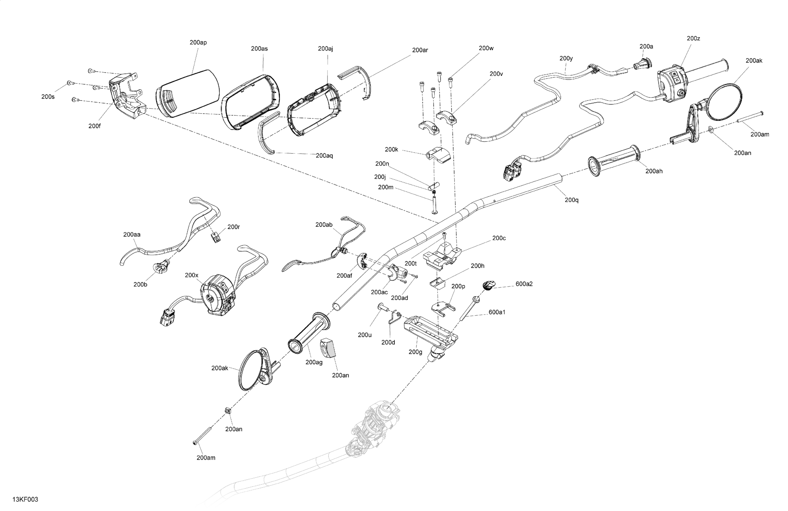 Can-Am RYKER - SPORT - 900 ACE - F5TA - CARB - Deep Black, 2026 Mechanic - Handlebar Diagram