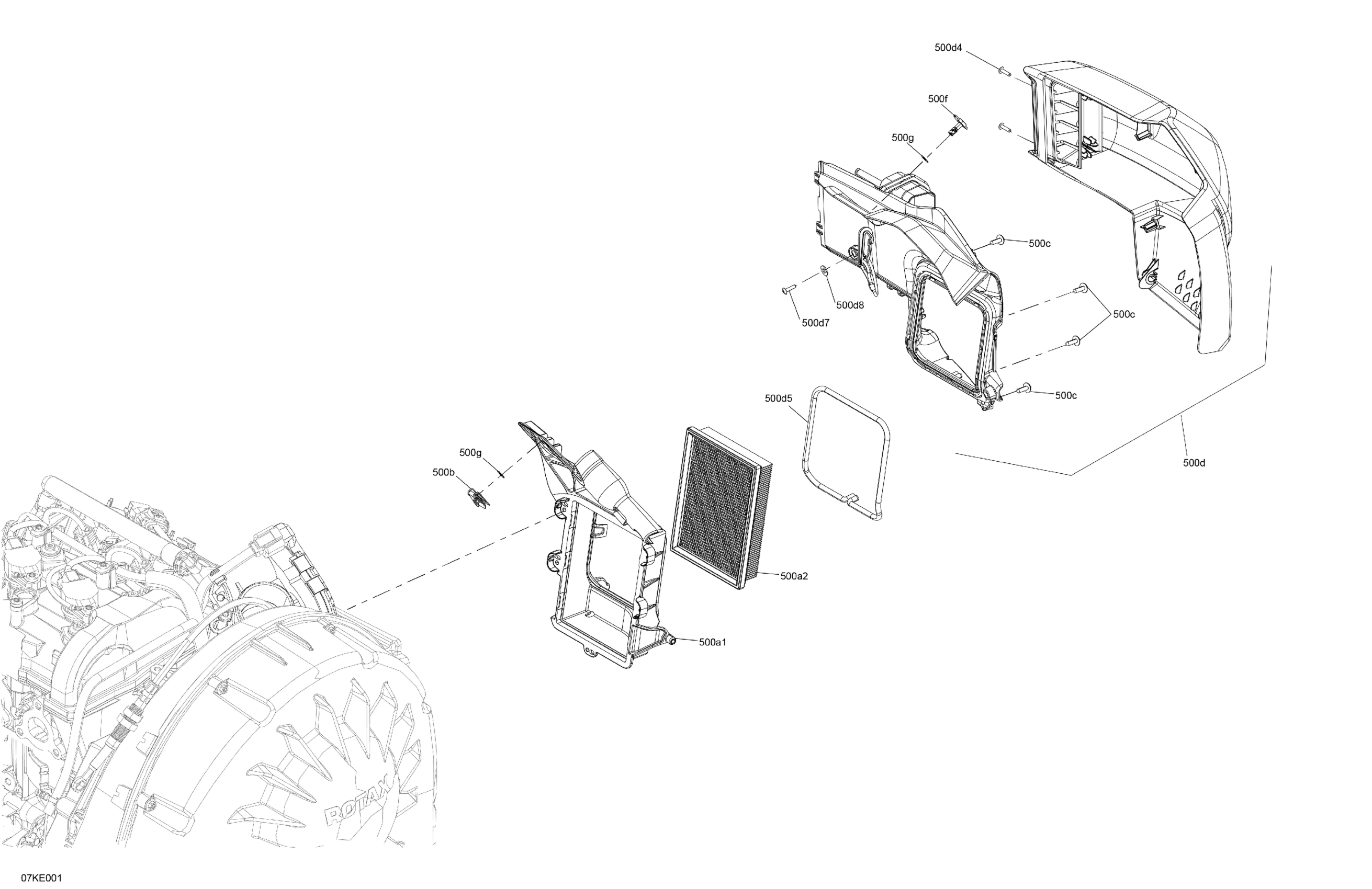 Can-Am On-Road International - RYKER - STD - 600 ACE - F1SB - Deep Black, 2025 02- Engine - RH Air Intake Diagram