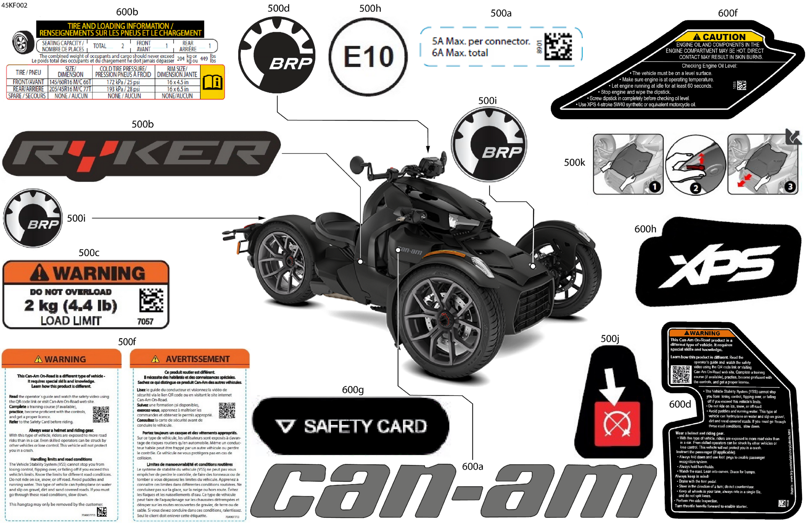 Can-Am International - RYKER - STD - 600 ACE - F1TB - Deep Black, 2026 Body - Decals Diagram