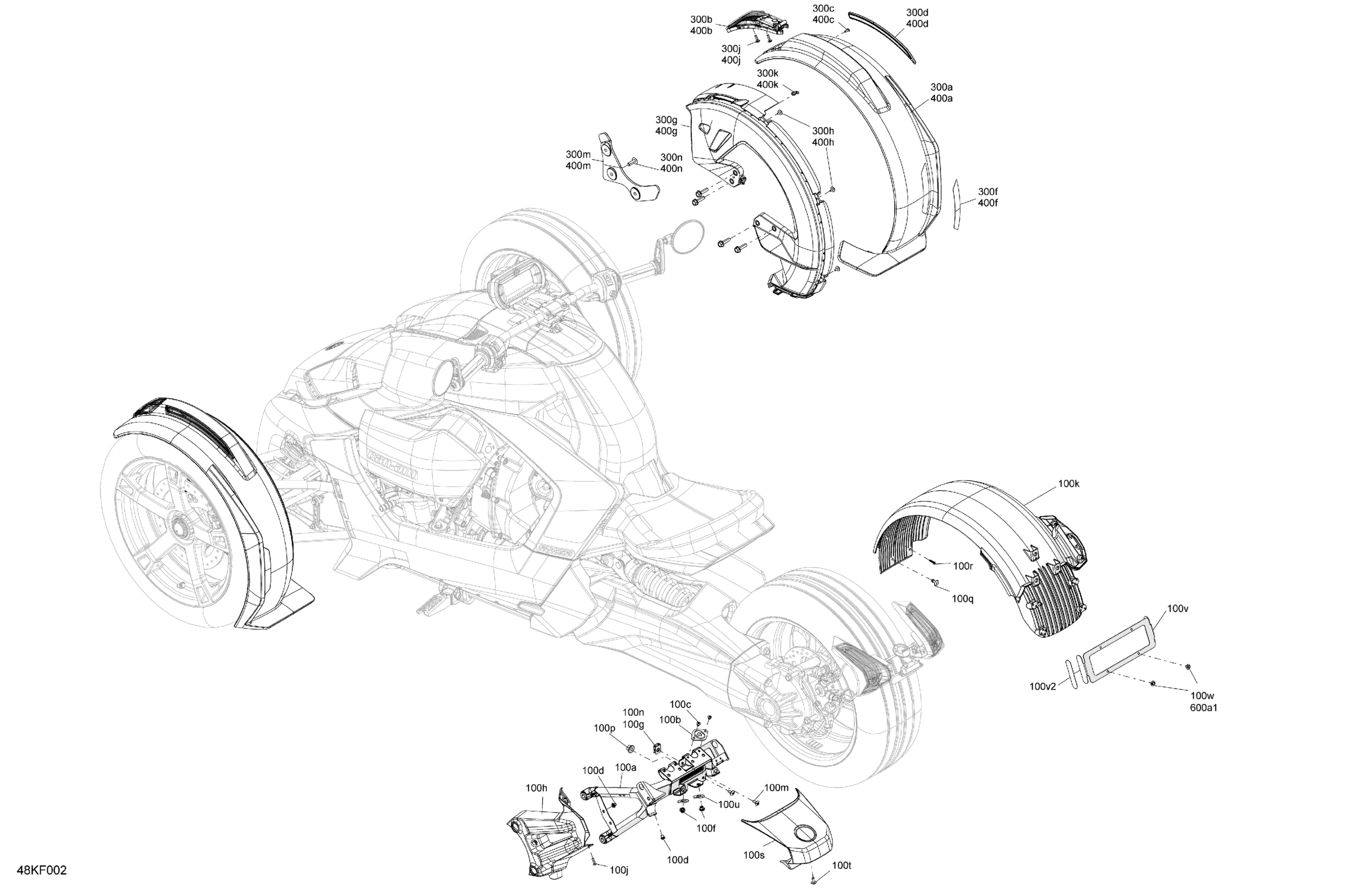 Can-Am International - RYKER - STD - 600 ACE - F1TB - Deep Black, 2026 Body - Fender Kit Diagram