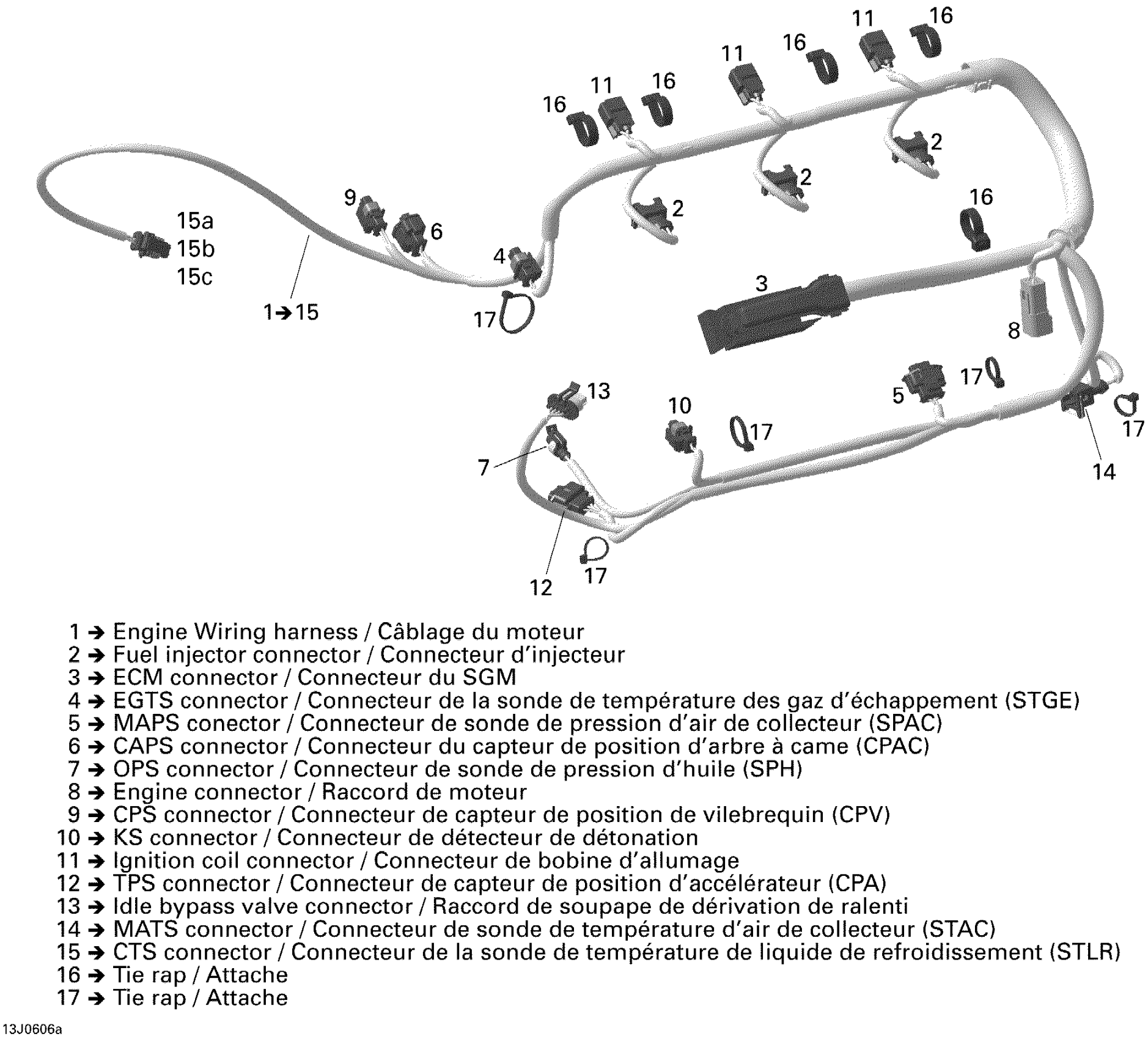 ENGINE WIRING HARNESS ASS'Y - Call your local BRP dealership | Includes 1 to 13