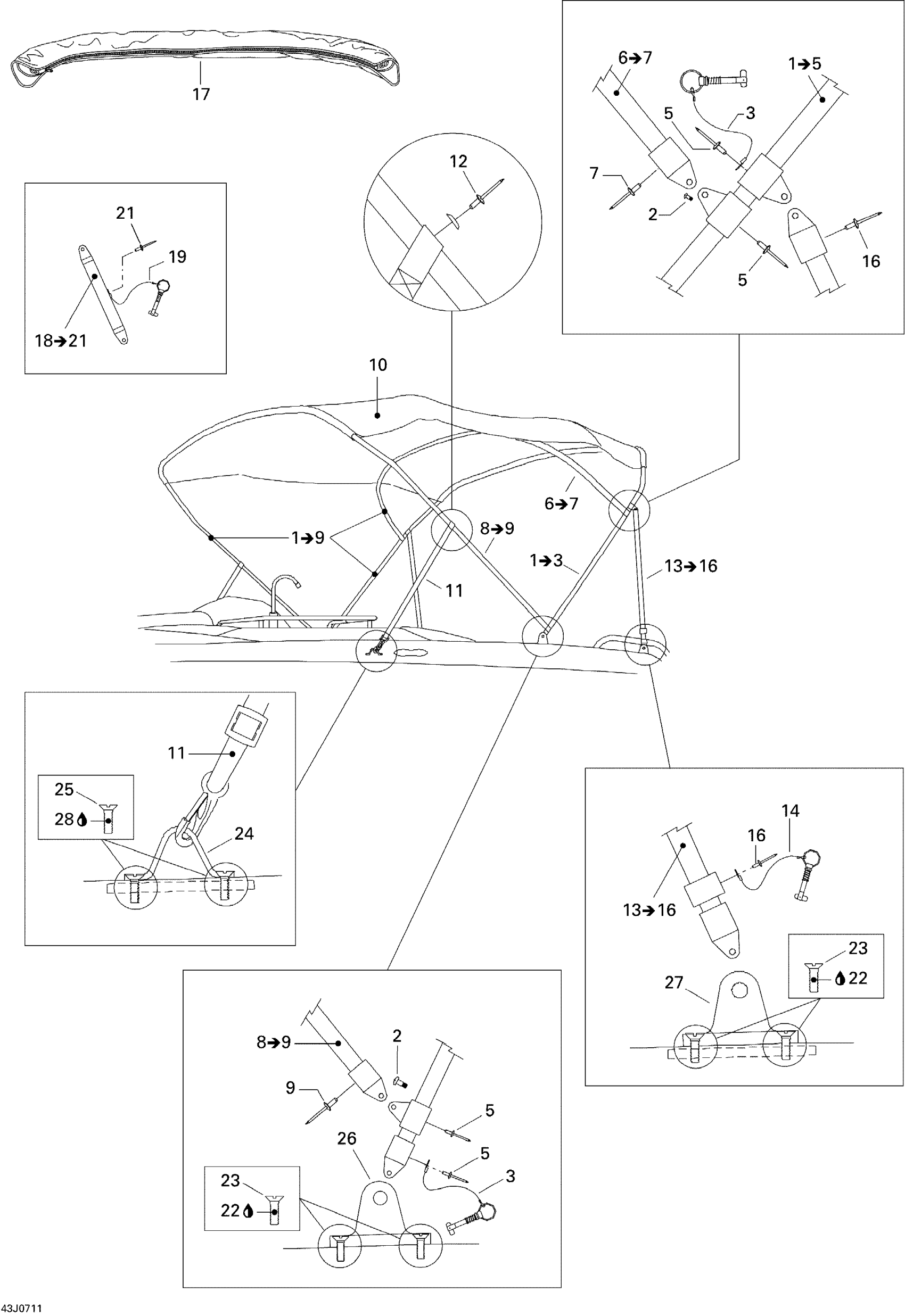 BIMINI TOP FRAME ASS'Y - Call your local BRP dealership | Includes 1 to 4