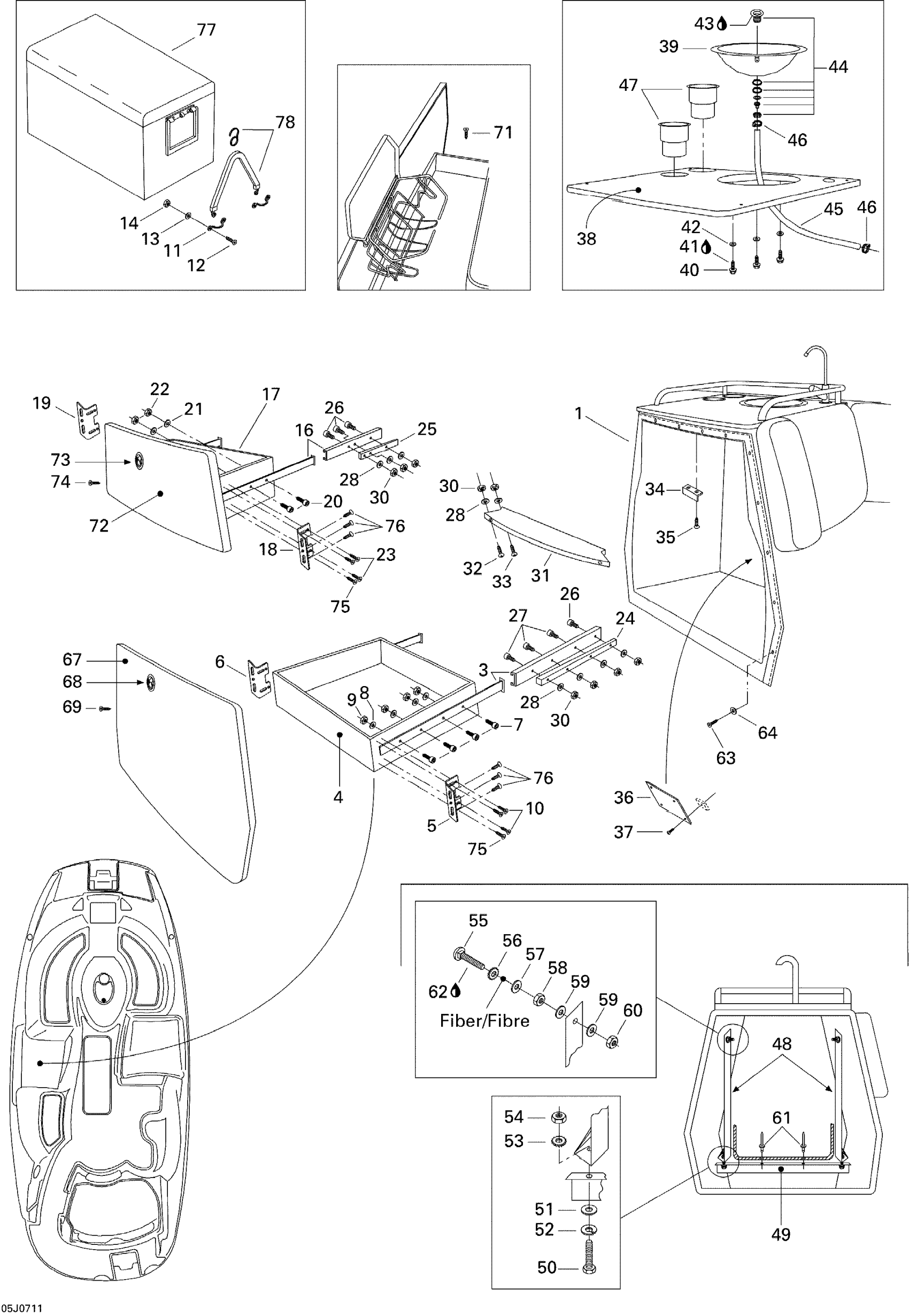 Sea-doo Islandia 220 SE (155NA), 2007 Cabinet, Galley Diagram