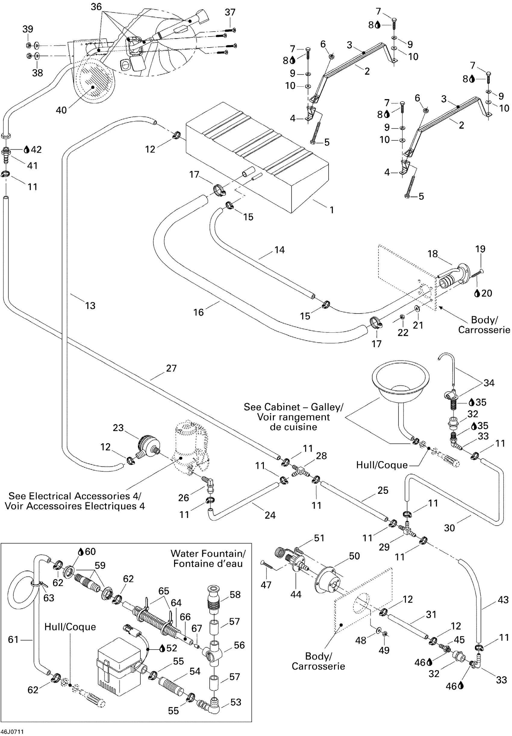 Sea-doo Islandia 220 SE (155NA), 2007 Passenger Water System Diagram