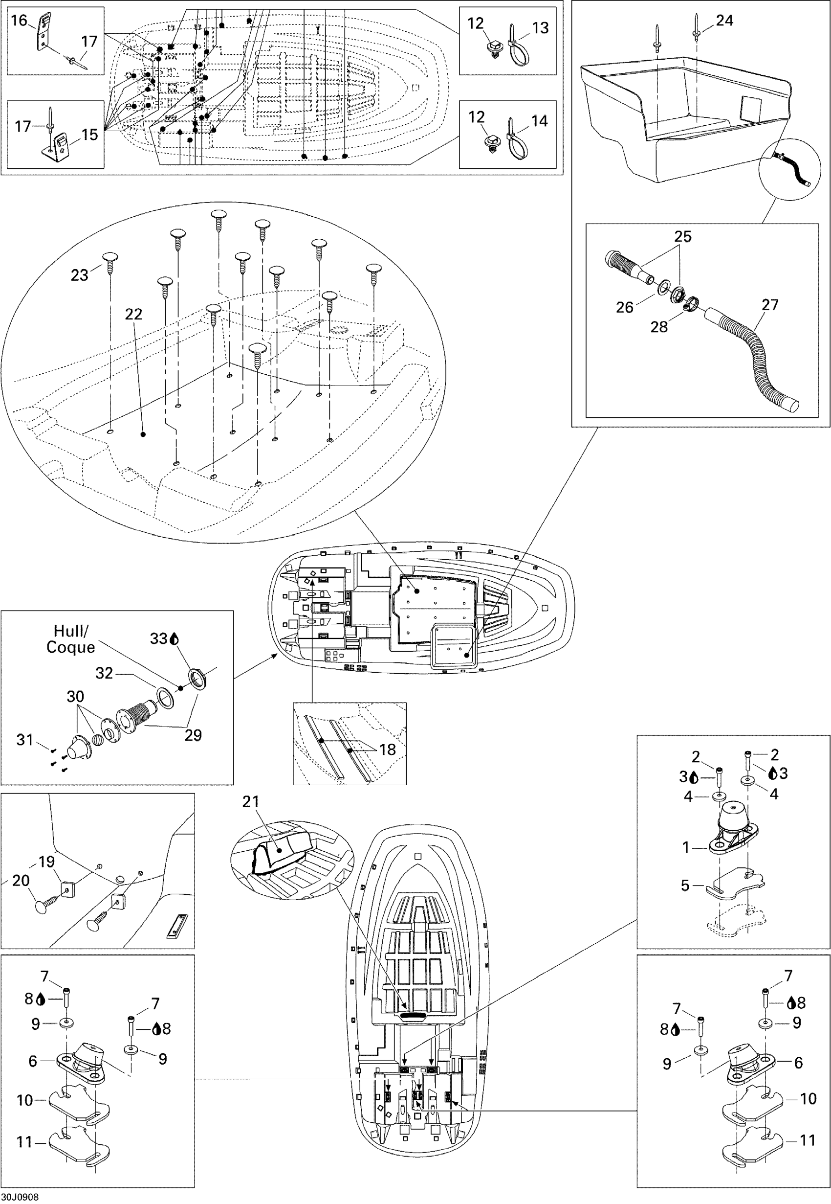 Sea-doo Islandia SE 2 x 215 SCIC, 2009 Lower Hull Diagram