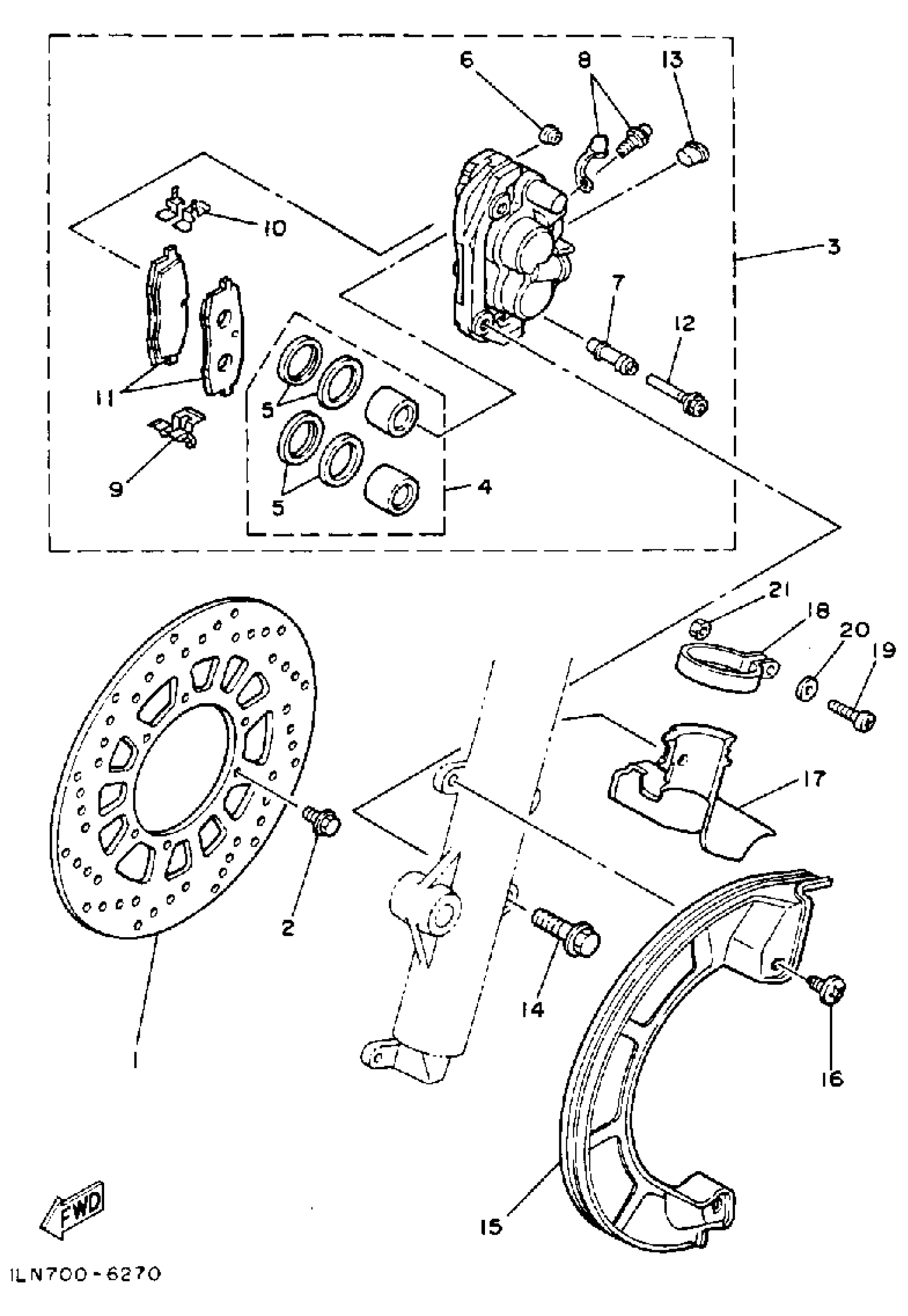Yamaha IT200S (IT200) 1986 FRONT BRAKE-CALIPER Diagram