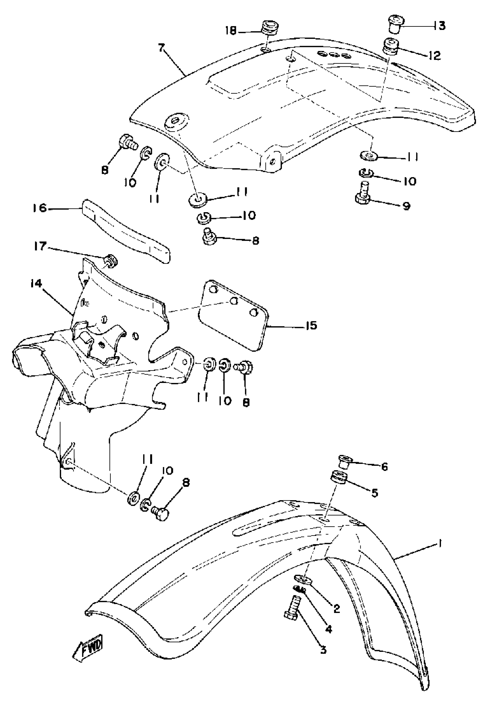 Yamaha IT400D (IT400D) 1977 FRONT FENDER REAR FENDER Diagram