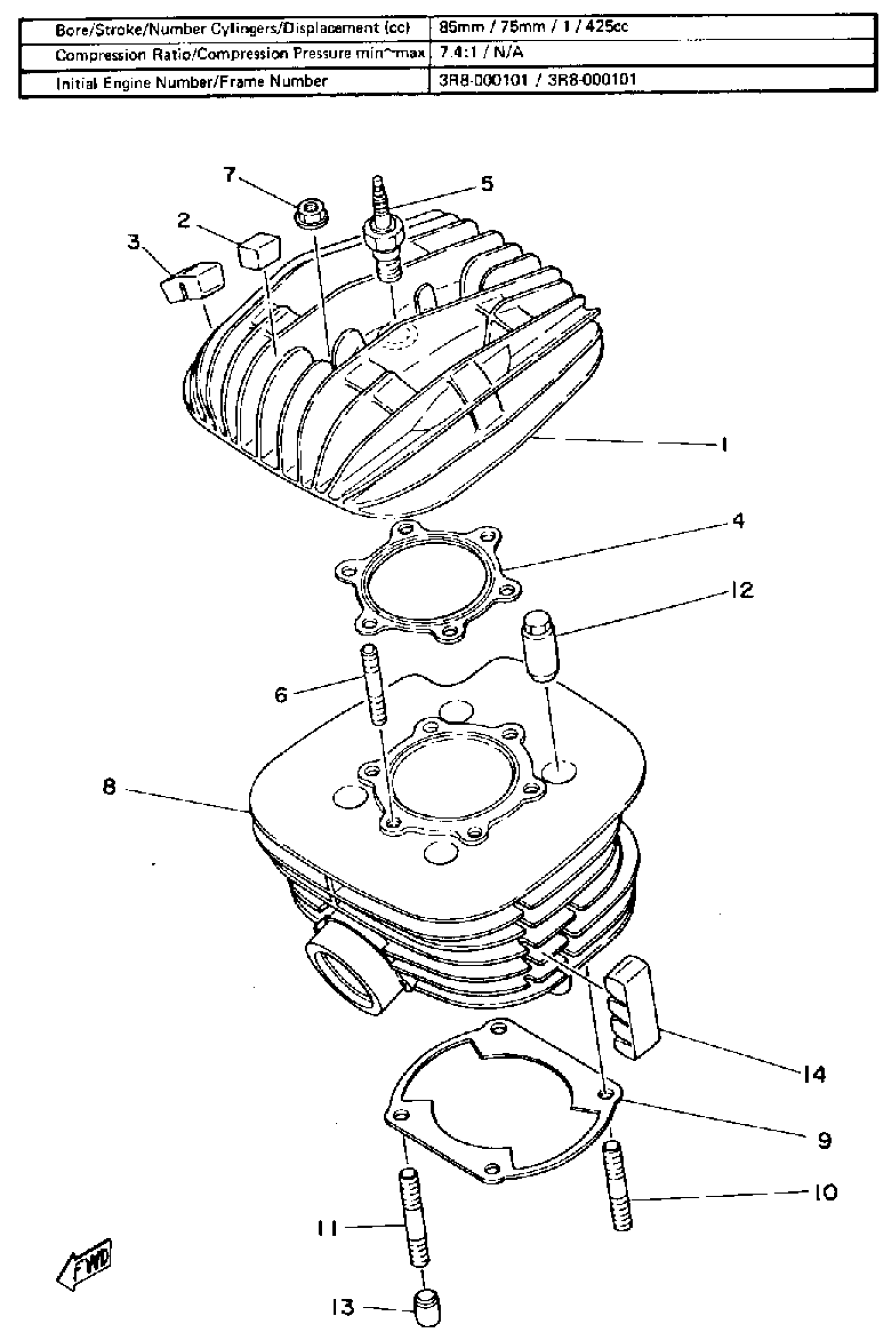Yamaha IT425G (IT425) 1980 CYLINDER Diagram
