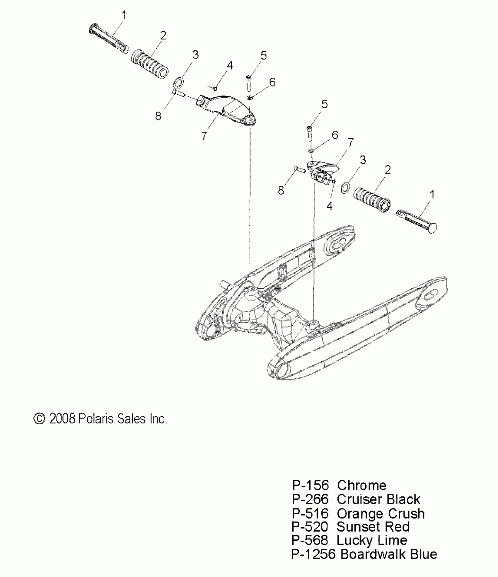 Polaris JACKPOT/NESS JACKPOT ALL OPTIONS - V09XB36/XC36 CHASSIS, FOOTPEGS, PASSENGER - V09XB36/XC36 ALL OPTIONS (49VICFOOTPEGPASS09JP) Diagram