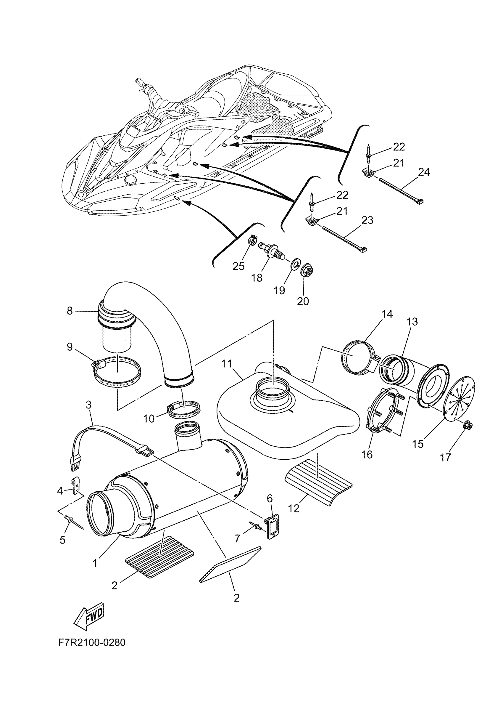 Yamaha JB1050FB (JETBLASTER) F7R2 2025 EXHAUST 3 Diagram