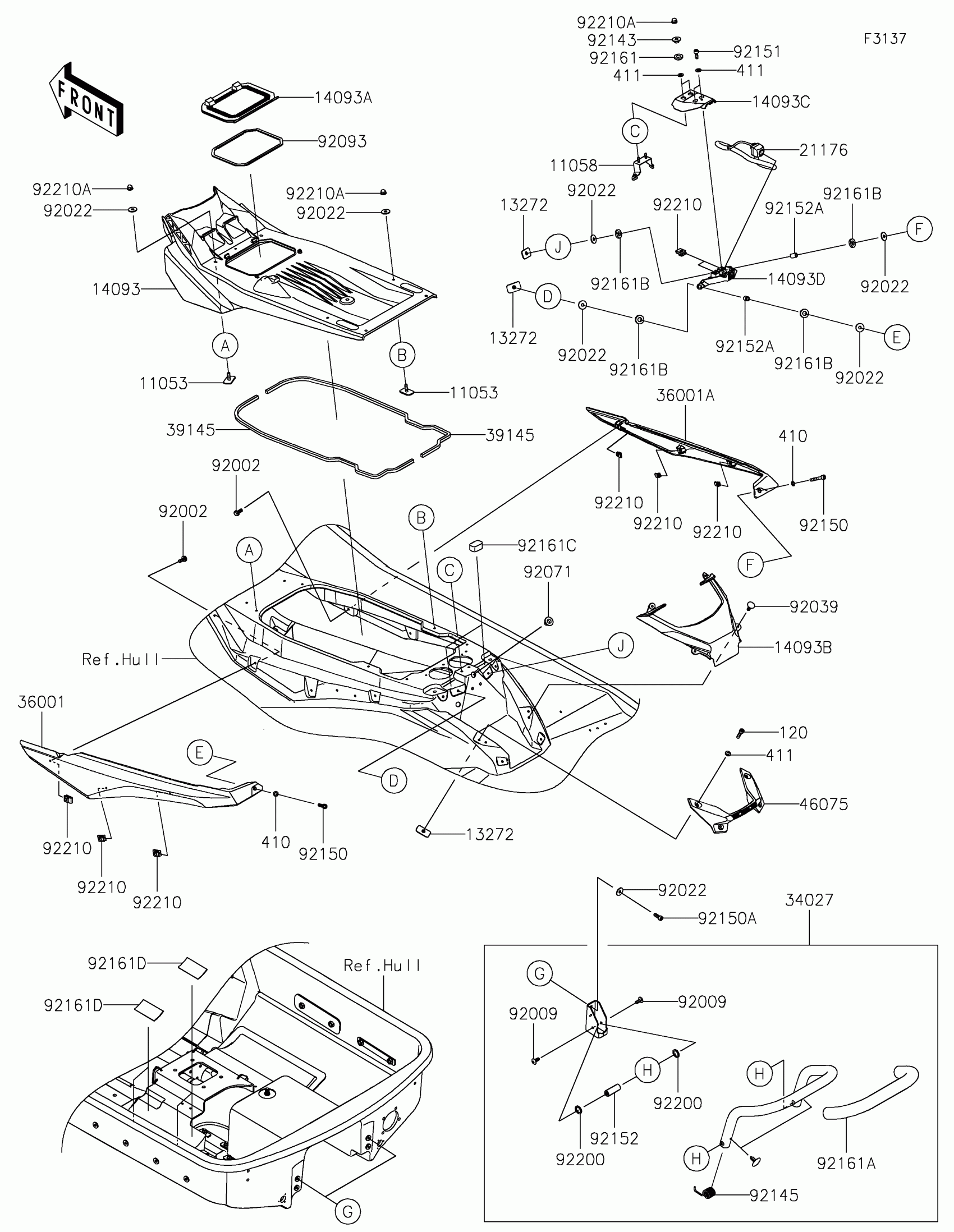 Kawasaki JET SKI® ULTRA® 160LX Hull Rear Fittings Diagram