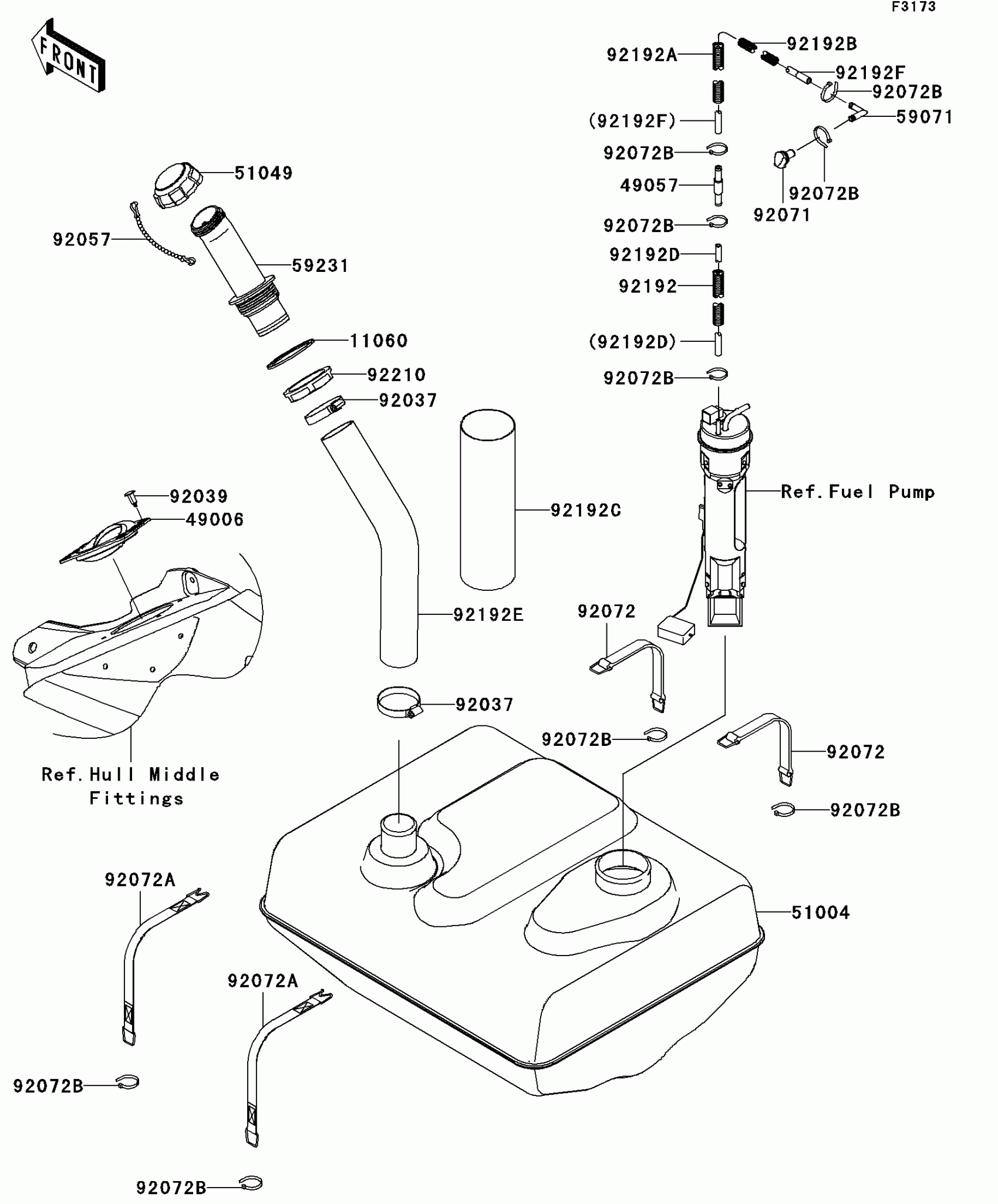 Kawasaki Jet Ski® Ultra® 260X Fuel Tank Diagram