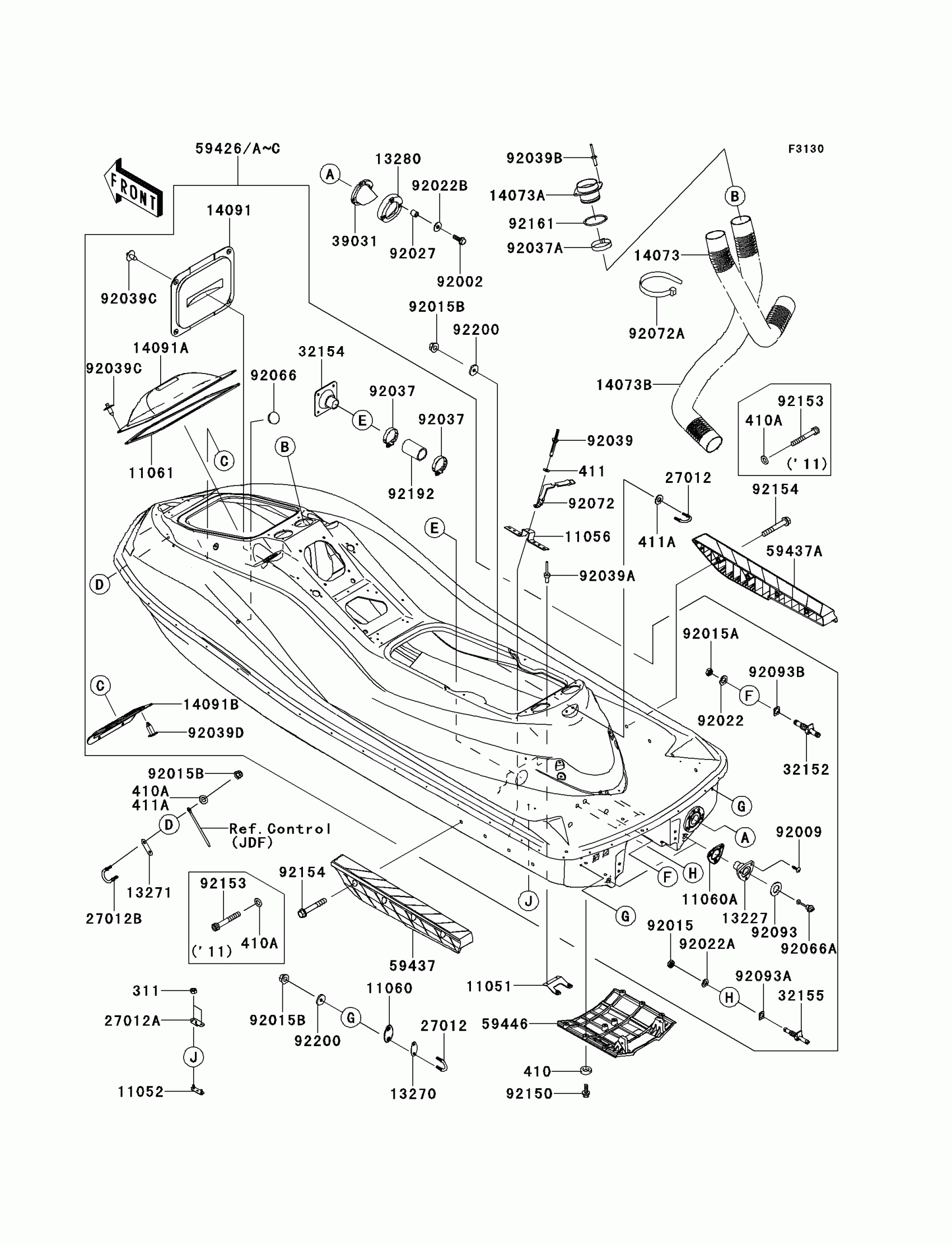 Kawasaki JET SKI® Ultra® 300LX Hull Diagram