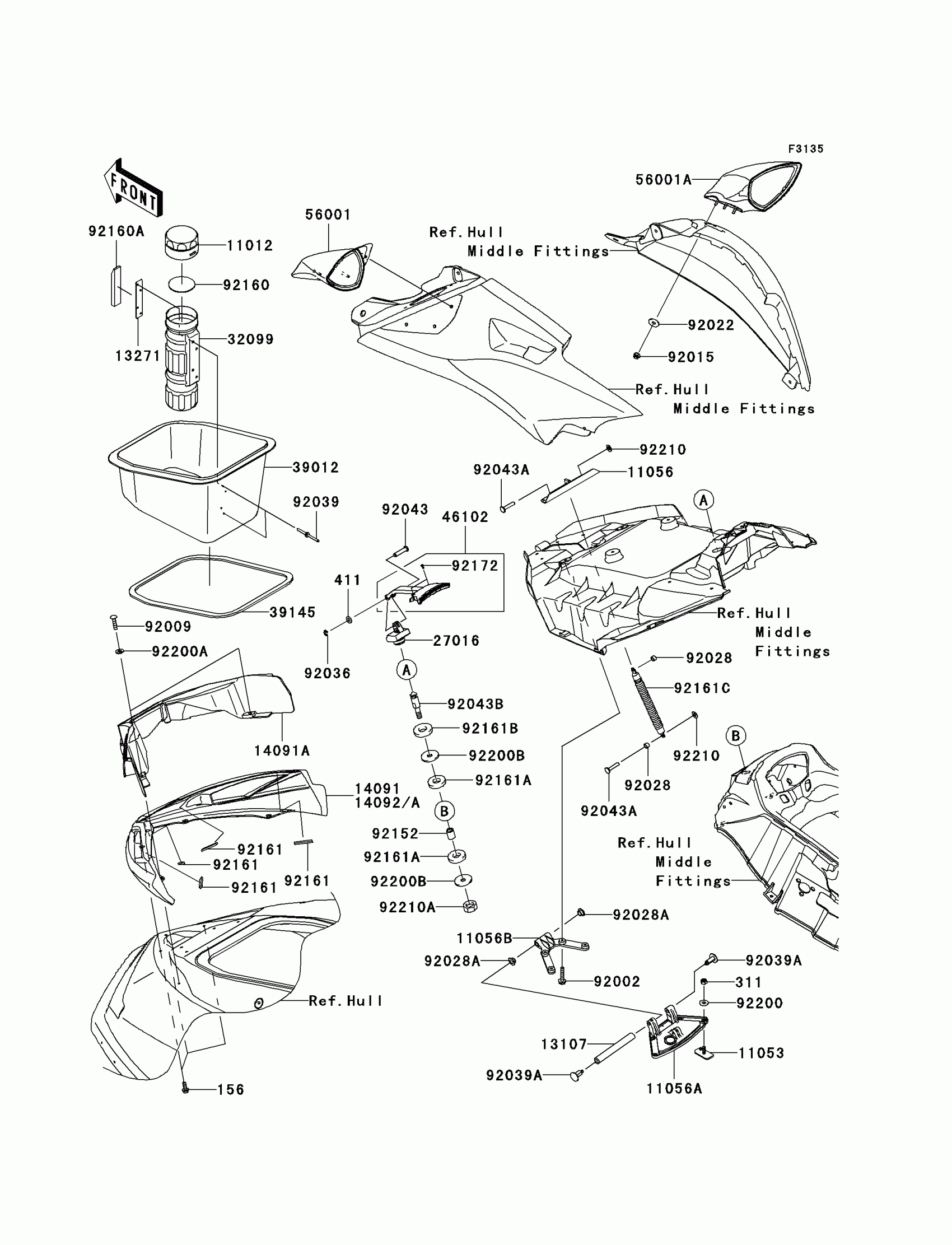 Kawasaki JET SKI® Ultra® 300X Hull Front Fittings Diagram