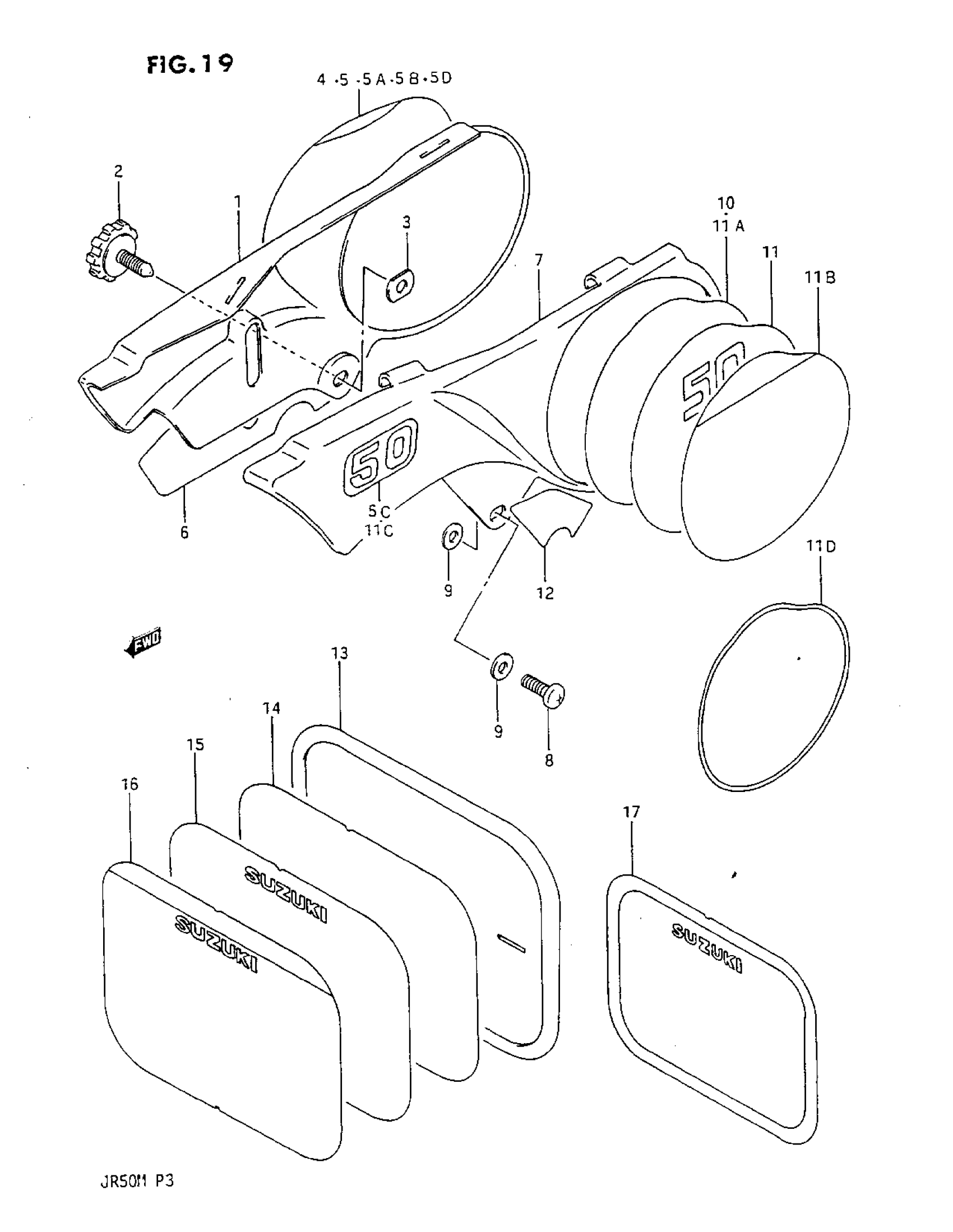 Suzuki JR50 (1987) FRAME COVER Diagram