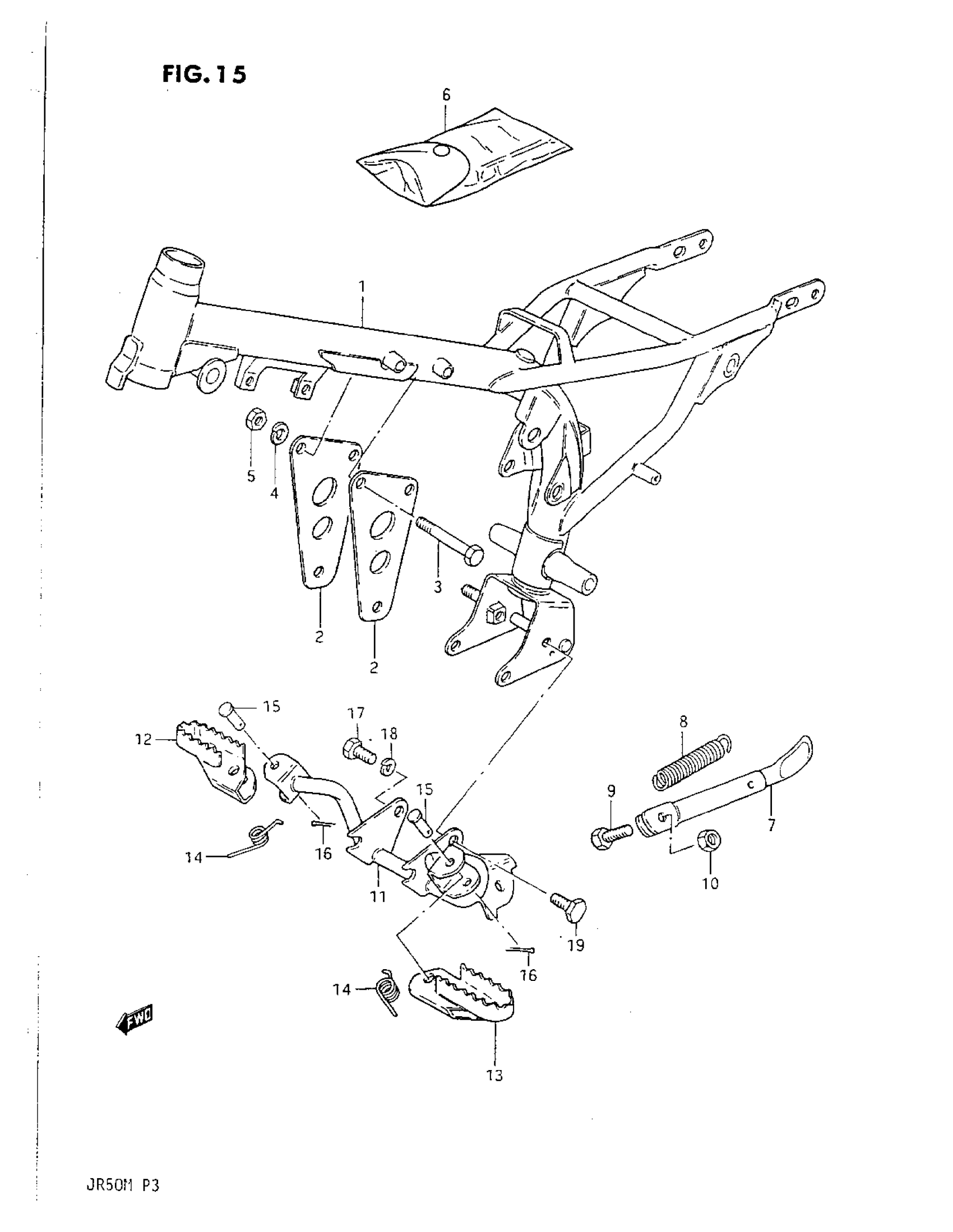 Suzuki JR50 (1987) FRAME-FOOTREST Diagram