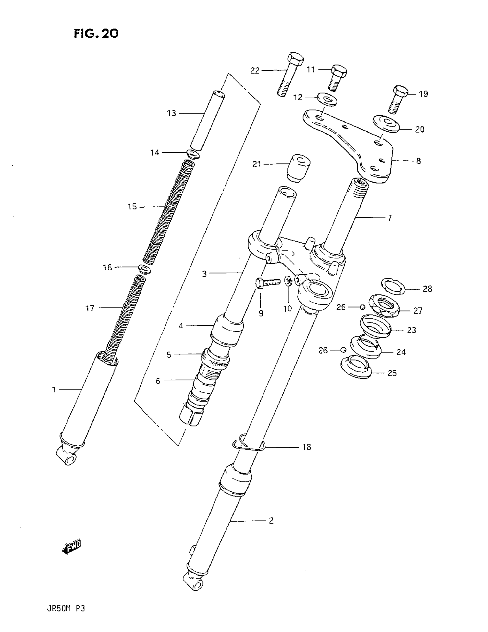 Suzuki JR50 (1987) FRONT FORK Diagram